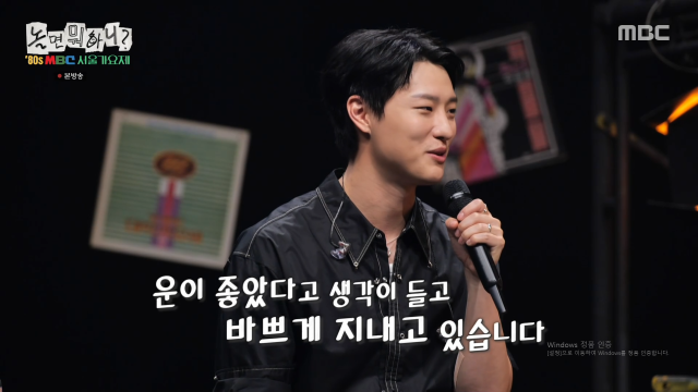 가수우즈가전역한소감을전했다./MBC'놀면뭐하니?'[마이데일리=김하영기자]가수우즈가'서울가요제'무대를통해전역후첫방송활동을시작했다.23일방송된MBC예능'놀면뭐하니?'에서는'80s서울가요제'예선합격자들의정체가공개됐다.이날가림막뒤에서등장한공작상가,동아기회그리고종로서적은조덕배의'그대내맘에들어오면은'을함께열창했다.무대가끝난뒤정체가드러나자모두의예상대로공작상가는박명수였고,동아기회은하동균,종로서적은우즈였다.지난7월복무를마친우즈는"전역한지24일정도됐다.전역하고다음날바로노래부르는영상을찍었다"고소감을전했다.특히군백기동안'드라우닝'(Drowning)이역주행신화를일으킨것에대해우즈는"감개무량하다.운이좋았다고생각이들고요즘바쁘게지내고있다"고덧붙였다.한편보류판정을받았다가합격하게된박명수는"저라도합격이라고말은못할것같았다.어떻게다잘하냐?한명은받쳐줘야한다"고너스레를떨며웃음을자아냈다.Copyright©마이데일리.무단전재및재배포금지.