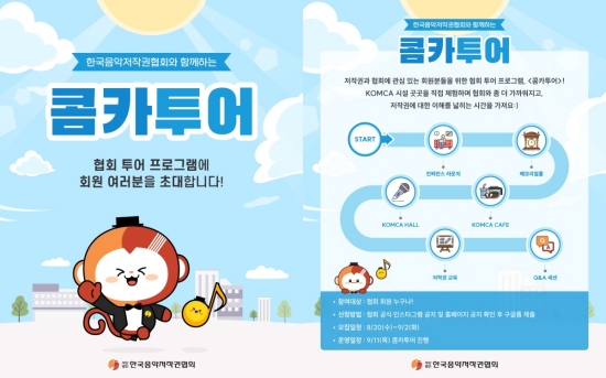 (엑스포츠뉴스이정범기자)음저협이회원대상체험형소통프로그램'콤카투어'를9월선보인다.최근사단법인한국음악저작권협회(회장추가열,이하음저협)는회원대상현장체험프로그램'콤카투어(KOMCATOUR)'를9월11일(목)처음선보인다고밝혔다.'콤카투어'는창작자회원이저작권관리기관으로서의음저협의역할,역사,회원지원서비스를직접체험하도록설계한프로그램이다.음저협은회원20명을선발하며,가입연차(2년미만~5년이상)에따라신청을구분해신규회원과기존회원모두에게참여기회를제공한다.투어는약1시간진행하며,동선은음저협본관6층컨퍼런스라운지,1층메모리얼홀,회원센터,KOMCAHALL순으로설계됐다.메모리얼홀에서는창립자,역대회장단의업적,한국음악사,음저협연혁을확인한다.회원센터에서는신탁국업무와회원휴게공간을직접살필수있다.KOMCAHALL에서는저작권교육과질의응답을진행한다.교육은저작권의정의와종류,음저협60년역사와글로벌위상,저작권료징수·분배절차,회원복지서비스를다룬다.이자리에는전송팀과영상플랫폼팀이함께해최신미디어환경의저작권쟁점과실제사례를공유하며현장질문에답할예정이다.음저협관계자는"'콤카투어'는회원들이협회와더가까워질수있는체험형소통프로그램"이라며,"창작자의권리를지키는음저협의역할뿐아니라다양한지원제도를직접확인할수있는특별한기회가될것"이라고말했다.사진=음저협이정범기자[email protected]©엑스포츠뉴스.무단전재및재배포금지.