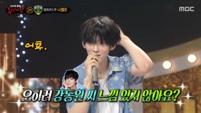 MBC‘복면가왕’캡처MBC‘복면가왕’캡처[뉴스엔서유나기자]앰퍼샌드원나캠든이쏟아지는외모칭찬에어쩔줄몰라했다.8월24일방송된MBC예능'복면가왕'509회에서는새가왕'악귀쫓는호랑이'의연승을막기위해출격한복면가수들의솔로곡대결이펼쳐졌다.이날'여름향기'에게패배한'여름방학'의정체는보이그룹앰퍼샌드원의리더나캠든이었다.잘생긴외모로가면을벗을때부터뜨거운환호를받은나캠든을향해"가까이서보니까옥택연씨많이닮았다"며이런소리를많이들어보지않았냐고물은김성주는나캠든의"처음들어본다"라는답변에머쓱해했다.김원준은심지어"강동원씨느낌있지않냐"고칭찬했다."얼굴이비현실적으로작다"등쏟아지는칭찬에나캠든은어쩔줄몰라하며뒷걸음질을치더니"어떻게해야할지모르겠다"고토로해웃음을자아냈다.뉴스엔서유나stranger77@기사제보및보도자료[email protected]ⓒ뉴스엔.무단전재&재배포금지Copyright©뉴스엔.무단전재및재배포금지.