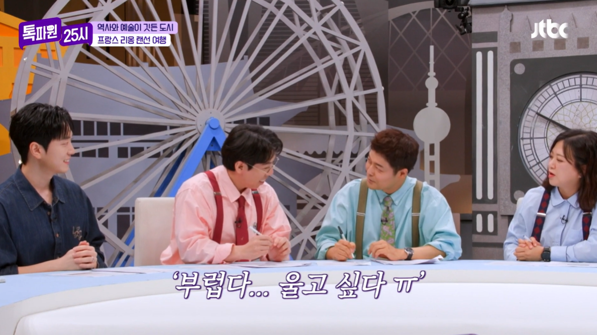 JTBC예능‘톡파원25시’전현무가김연아를아내로둔고우림에게질투섞인눈초리를보냈다.지난25일방송된JTBC예능‘톡파원25시’에는포레스텔라멤버고우림이게스트로출연해아내김연아와의달달한일상을공개했다.고우림은“아내가요리를좋아하고즐겨한다.잘하기도하고맛도있다”며“본인이직접찾아보고솥밥도하고몽골리안비프까지한다.여러가지음식을찾아서해준다”고자랑했다.JTBC예능‘톡파원25시’JTBC예능‘톡파원25시’JTBC예능‘톡파원25시’JTBC예능‘톡파원25시’이말을듣던전현무는줄곧고우림을바라봤고,양세찬은“여기다‘부럽다’를썼네요”라고폭로했다.전현무는“울고싶다ㅠ도썼다”고덧붙이며질투심을드러냈다.이어전현무가“고우림이뽑은김연아의음식톱은뭐냐”고묻자,고우림은“차돌을얹은솥밥”이라고답했다.그는“그때간과고기의익힘,야채의조합이너무훌륭했다”고극찬했다.이에전현무는볼펜을집어던졌고,김숙이“왜볼펜을던지냐”고묻자전현무는“집에가서솥밥을해먹으려고”라고답해웃음을자아냈다.서형우기자[email protected]©스포츠경향.무단전재및재배포금지.