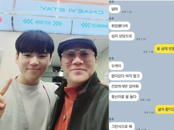 [스포츠조선백지은기자]가수윤민수의아들윤후가지극한효심을보여줬다.윤후의모친이자윤민수의전처인김민지씨는26일자신의계정에"이슈된김에헤헤#아들자랑#오늘카톡#윤후"라며윤후와나눈메신저대화내용을공개했다.윤후는다시유학길에오르기전엄마를살뜰히챙겼다.그는"엄마심리상담으로취업했다며"라고물었고,김민지씨는"응.그런데안하려고"라고답했다.윤후는"오케이.왔다갔다하지말고건강하게만있어줘.정신이랑몸둘다"라고엄마를걱정했다.윤후는과거MBC'아빠!어디가?'출연당시어린나이임에도항상다른사람을배려하고챙기는모습을보여'천사후'라는애칭을얻은바있다.그런고운심성을여전히간직하고있다는게드러나며네티즌들은또한번훈훈함을느꼈다.윤민수와김민지씨는2006년결혼했으나지난해이혼했다.윤민수는24일방송된SBS'미운우리새끼'에서"정확하게서류정리가된건두달정도"라며"이혼후정리할부분이많은데그중하나가집이매매되어야한다는거다.그러다보니당분간같이지내게됐다"고'이혼후한집살이'를고백해화제를모았다.백지은기자[email protected]©스포츠조선.무단전재및재배포금지.