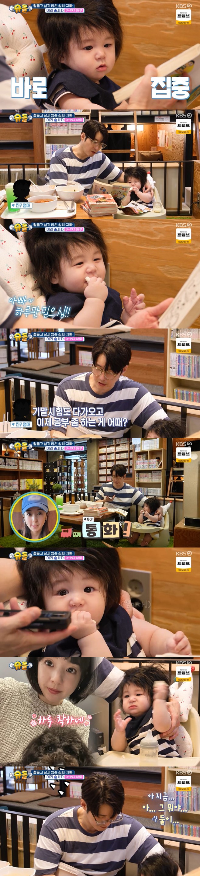 티브이데일리포토[티브이데일리이기은기자]심형탁,와이프에겐약체였다.27일저녁방송된KBS2예능프로그램‘슈퍼맨이돌아왔다’(이하‘슈돌’)에서는배우심형탁사야아들하루일상이공개됐다.도라에몽‘덕후’인심형탁은이날도어김없이아들에게자신의취향을설파(?)하기에나섰다그는아이를데리고만화방에가서‘도라에몽’만화를읽기시작했다.이때사야전화가울렸다.심형탁은바짝긴장하며아내의“어디냐”라는질문에“밥먹고있다.밥집”이라며만화카페를식당으로둔갑시켰다.사야는아무것도모른채“잘했다”고말해웃음을자아냈다.[티브이데일리이기은기자[email protected]][Copyrightⓒ*세계속에新한류를*연예전문온라인미디어티브이데일리(www.tvdaily.co.kr)/무단전재및재배포금지]Copyright©티브이데일리.무단전재및재배포금지.
