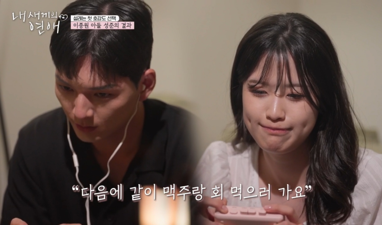 (엑스포츠뉴스김수아기자)'내새끼'들의첫호감도선택에서두쌍의커플이탄생했다.27일방송된tvNSTORY·E채널'내새끼의연애'(이하'내새끼')에는이종원의아들이성준,조갑경과홍서범의딸홍석주가메기로등장했다.아빠를닮아훈훈한외모의이성준이입주하자분위기는순식간에바뀌었고,이어마지막여성출연자인홍석주가합류했다.그러나이탁수는의미심장한표정을지으면서"살면서가장당혹스러운순간이었던것같다"라고인터뷰해궁금증을자극했다.알고보니두사람은이웃사촌이었고홍석주는"어릴때부터같이컸다.초중고를같이나왔다",이탁수는"같은학교를다니니까친해질수밖에없다.갑자기여기에나타나니까너무어색했다"며동네이웃이자학교선후배사이라고밝혔다.서로모르는척통성명하는명연기를지켜보던스튜디오의이종원은"둘이잘어울린다"고말했고,조갑경은"탁수야워낙애가잘생기고반듯하다"라며칭찬하더니"정말애는마음에드는데"라며이종혁을째려봐웃음을유발했다.또한이날서로의테이프로전하는첫호감도선택이진행돼설렘을유발했다.가장먼저이탁수가결과를확인했고이철민의딸이신향,전희철의딸전수완으로부터두개의테이프를받았다.다음으로하나의테이프를받은신향은탁수의메시지를확인하고"뭔가떨렸다.그전에는설렘보다는인간적인호감이었다면테이프를듣는데기분이좋았다"고소감을전했다.안유성의아들안선준과홍석주,박호산의아들박준호는테이프가없었으며이종원의아들이성준이남은2개의테이프를받았다.그런가하면,남자들의남은3개의테이프가김대희의딸김사윤에게몰빵돼모두를놀라게했다.세개의테이프를다들은김사윤은"제일설렜던건성준님이었다.제가보내기도했고,불편하지않았으면좋겟다는말이좋았다"라고인터뷰했다.사진=tvNSTORY방송화면김수아기자[email protected]©엑스포츠뉴스.무단전재및재배포금지.