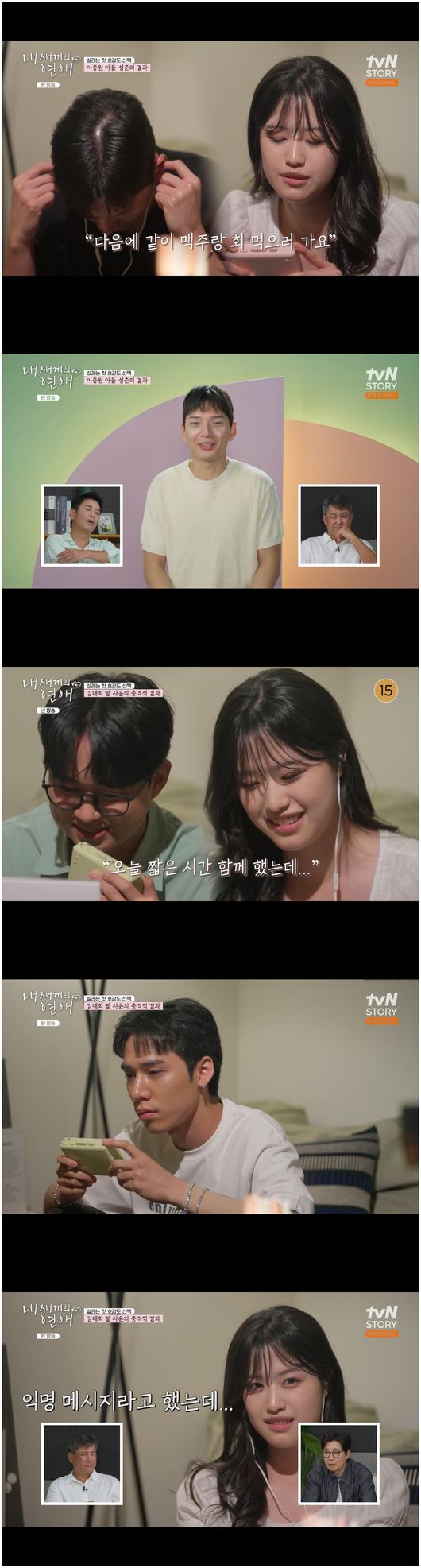 [OSEN=오세진기자]‘내새끼의연애’김대희의딸김사윤이놀라운인기를자랑했다.27일방영한tvNSTORY,티캐스트E채널‘내새끼의연애’에서는내새끼들의첫인상선택이시작되었다.뒤늦게메기역할로등장한이들까지포함한첫인상선택이었다.조갑경과홍서범의둘째딸홍석주는등장하자마자이종혁의아들이탁수를살짝당황시켰다.홍석주는“이탁수는어릴때부터같이컸고요,초중고를같이나왔다”라며인연을전했다.이탁수는“학교를같이나왔고,전공도같다”라며홍석주와친해질수밖에없는이유를밝혔다.이들은잠시서로대화를하는선택의시간에밖을빠져나왔다.존대를쓰던그들은웃음을참지못했다.홍석주는“난사실내가늦게도착하니까다들친해져있을줄알았는데,그래도너있어서마음둘데가있다”라며안도했다.이탁수는“마음이편해지는게우선이긴하지”라고말했다.이탁수는“우리끼리만의비밀이기도하고”라며웃어보였다.홍석주는“얼굴안본지는좀됐다.군대다녀온후못봤고,좀남자가됐나?”라며달라진이탁수에대해아리송한표정을지었다.친구에서연인이될수도있을까.조갑경과이종혁은오랜동네친구이며주민이었다.그들은경악하며딸과아들의첫인상선택을보았으나,이들은서로를철저히친구로인식한채다른출연자에게마음을주었다.우선이탁수는여성출연자들에게큰인기를얻었다.전희철딸전수완,이철민딸이신향에게서였다.이탁수는제첫인상으로이신향을선택했다.이철민은“전되게복잡한감정이드는게,전감독님생각하면마음이그렇다.탁수생각하면잘생겼고,키크고좋다.그런데아버지인이종혁을생각하면좀”이라며복잡미묘한표정을드러냈다.여성출연자들의표가공개됐다.사물함을열어자신의마음이녹음된익명테이프를듣는시간이었다.첫출발은김대희딸김사윤이었다.김사윤은사물함을열다말고소스라치게놀랐다.무려3표나받았던것이다.바로안유성의아들안선준,박호산의아들박준호,이종원의아들이성준이었다.이종원의아들이성준은“사윤님안녕하세요,저성준입니다.일단은첫번째로단둘이대화할때제가뽑았는데,혹시기분이너무안나쁘셨으면좋겠습니다”라면서“그리고저도먹는거좋아하니까,시장가는거나중에같이갔으면좋겠습니다”라며설레는마음을전했다.김사윤은“제일설렜던건성준님이었다.왜냐하면제가메시지보내기도했고,불편하지않았으면좋겠다고해서,그래서좋았다”라며그의마음에대해공감했다.대망의다음날이되자선착순남성선택데이트가시작되었다.아직20대에불과한그들은격렬한경쟁의식을드러내지못했다.그러나박호산아들박준호가조갑경의딸을선택하면서,안선준과이성준중누가먼저김사윤에게데이트를선택할지귀추가주목되었다./[email protected][사진출처]tvNSTORY,티캐스트E채널‘내새끼의연애’Copyright©OSEN.무단전재및재배포금지.