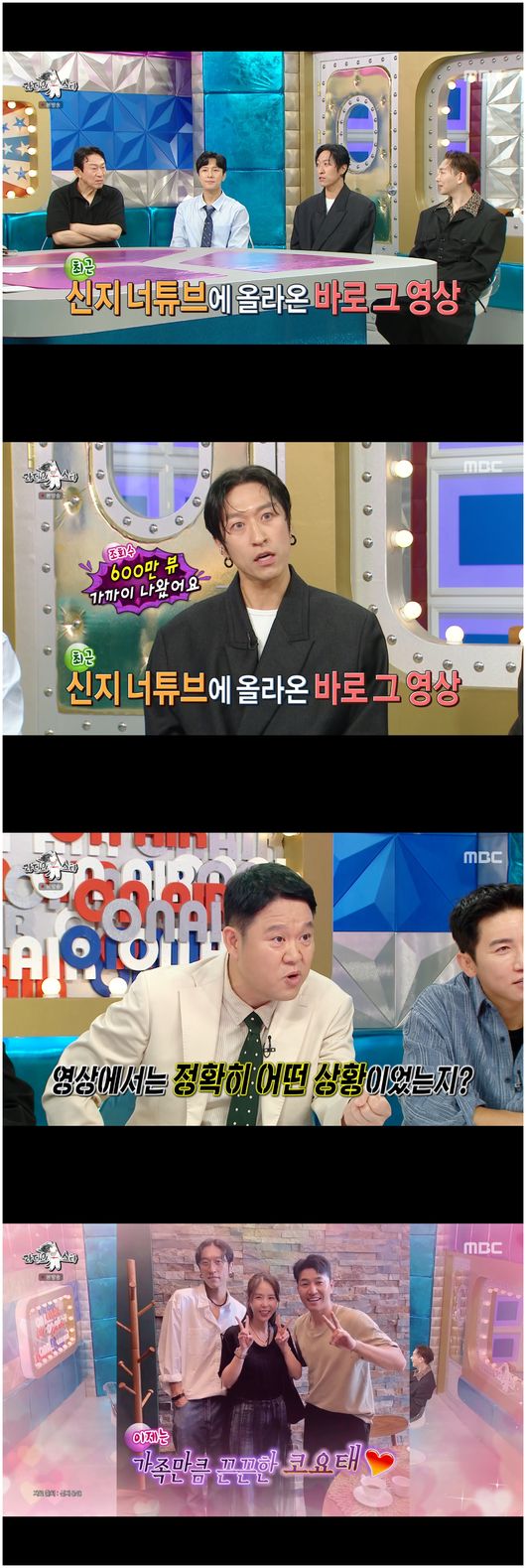 [OSEN=오세진기자]‘라디오스타’빽가가신지와문원의화제의상견례영상속자신의행동에대해솔직히말했다.27일방영된MBC예능‘라디오스타’에서는흥행보증수표인김응수,김동완,김호영,빽가가등장했다.김응수는“추노가먼저다.대왕세종,임진왜란1592등75%가흥행했다”라면서“운이좋다고하지만,75%의결과치가있는데그걸어떻게운이라고생각하냐.난내가보는눈이라고생각한다”라며자신의식견에대해말했다.'해를품은달'이전에영화'주유소습격사건'에도출연했던김응수.김응수는“경찰역이제일많다.대표작은‘주유소습격사건’이다.의상팀에전화해서경찰복미리달라고했다.그걸입고집에서생활했다.슈퍼에라면을사러갔는데옷벗기귀찮아서그대로사서나오는데경찰차가지나가는거다”라며파출소까지연행다녀온덕분에더욱실감나는연기를펼칠수있었다고밝혔다.그는유명배우가되고난후둘째딸은서와함께연예인2세예능'붕어빵'에도출연했었다.현재둘째딸은서는미국명문대를엄청난성적으로졸업후대학원과정을보내고있다고밝혀모두를놀라게만들었다.뮤지컬배우김호영은'라스'에대해감사함이많다고전했다.각종유행어부터시작해서3년전류승수와환상의케미를만들어낸후각종목격담으로사람들에게미소를안겼던김호영은“제가사실‘라스’나와서잘된게많다.유행어도많고.그래서오늘도럭키드로우를가지고왔다”라며시상식수상소감럭키드로우를또한번펼쳐보였다.조혜련,류승수,이은지,정찬성,유희관그리고라스MC까지포함된럭키드로우.김호영은“라스에서김호영끌어올려주신분이죠?너무의외다.라스특별MC인양세찬이다.양세찬이‘김구라랑손짓이닮았다’라고해주셔서분량을끌어올렸다.고맙다”라면서“두번째는장도연씨다.특별히제가먹는레몬즙드릴게요”라고말해웃음을안겼다.김동완은가평에서여전히지내고있으며다만소속사없이혼자활동하고있다고말해모두를놀라게만들었다.그는30년째꾸준히연애예능프로그램에출연중이지만신화에이제단둘뿐인미혼멤버로남아있었다.그는결혼식을하지않으며,구축아파트에서결혼생활을하는게조건이라고말해묘한난해함을보여모두를당황시켰다.한편빽가는신지와문원의상견례유튜브에서보였던자신의태도에대해말했다.당시논란이자화제가됐던영상에서가족같이여기는신지를바라보는빽가는꽤착잡했던것으로대다수가유추했고,빽가또한잠시화장실을가겠노라자리를비웠었다.빽가는“아시겠지만,신지유튜브영상이600만뷰를찍었다.제가감정정리가안돼서화장실을갔는데,친구들이술자리에서‘너화장실안가냐’라고자꾸묻는다”라며“그래서이제화장실갈때마다불편하고그렇다”라고말했다./[email protected][사진출처]MBC예능‘라디오스타’Copyright©OSEN.무단전재및재배포금지.