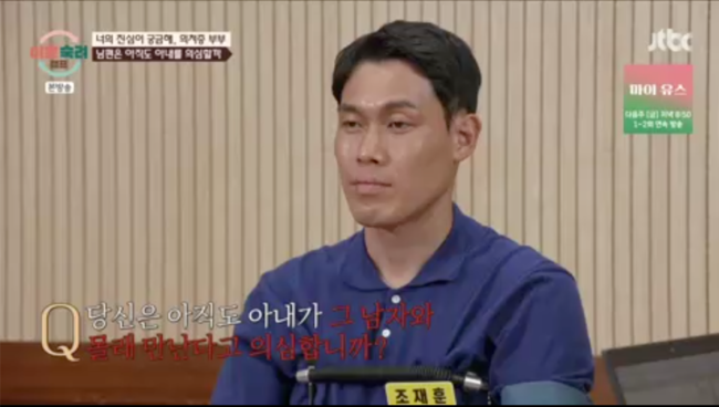 [TV리포트=한수지기자]'이혼숙려캠프'의처증부부의변호사상담이진행됐다.28일방송된JTBC예능프로그램'이혼숙려캠프'에는'의처증부부'가거짓말탐지기검사후서장훈과이야기나누는모습이그려졌다.이날'의처증부부'아내는거짓말탐지기검사에서남편의궁금증인'당신은진심으로상간남OOO씨를사랑했습니까?'라는질문을받았다.아내는'아니오'라고답했다.서장훈은남편의질문을보고는"이사람(남편)의마지막자존심일것"이라며"이미자존심은다뭉개졌지만사랑은안했다,마음까지준것은아니라는것을확인받고싶은거다.사랑까지했다면무너질것"이라고짚었다.남편은거짓말탐지기결과를'진실'로예상했고,실제'진실'이나왔다.아내는상간남을사랑하지않았던것.결과를본남편은안도의미소를지었다.서장훈은"미세한반응은보였지만진실이라고한다"라며남편을향해"아픈상처지만화끈하게잊어야한다"라고조언했다.제작진과의인터뷰에서의처증남편은"너무좋았다.세상을다가진기분이었다.와이프가나에게마음이있다는거니까"라며기뻐했다.아내가남편에게묻고싶은질문은'당신은아직도아내가그남자와몰래만난다고의심합니까?'였다.이에남편은'아니오'라고답했고,다른출연자들역시'진실'이나올것이라고내다봤다.하지만아내는"뻥치고있네"라며남편을믿지않았다.남편은'거짓'이나왔고,아내는"그럴줄알았다"라고덤덤히말했다.서장훈은"진실이나올수가없다.내가제일기막혔던건부부싸움을하고나가는와중에도(아내의옷)냄새를맡더라.아직도의심을하는거다"라고지적했다.인터뷰에서아내는"맨날말로는'변할게''풀어줄게'하면서행동으로변화는없었다.계속이런다면결과는이혼일것"이라고싸늘하게말했다.이후'의처증부부'의변호사상담시간이진행됐다.아내는자신의외도로인해위자료를받을수없는지를궁금해했다.양나래변호사는"이혼을하고다른사람을만났어야지,다른사람을만남으로서보복을한다는건잘못된거다.바람을정당화할수없다.그런데배우자의부정행위가발생하고6개월이후에는이혼사유가될수없다는게있다"라고설명했다.아내는외도후10개월이지난상태였다.반면남편은아내의외도이전에도의처증증상을보이고있었다.박민철변호사는"외도발각후아내의반응은어땠냐?"라고물었고,남편은"이혼하자고했다.내가이혼만은안된다,잘못했다고빌었다"라고답했다.박민철변호사는"(아내의귀책사유가)외도가없어져버렸다.오히려귀책사유가남편에게생기게된다.거꾸로질수있다.역전이됐다"라고말했다.이를들은남편은근심으로얼굴이굳었다.한수지기자[email protected]/사진=JTBC'이혼숙려캠프'Copyright©TV리포트.무단전재및재배포금지