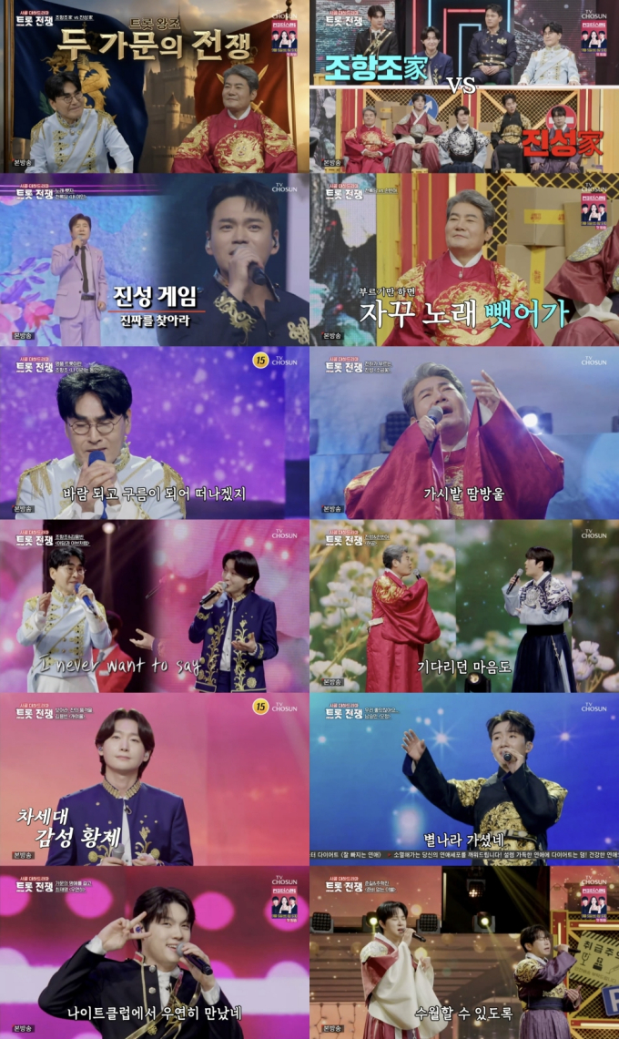 ‘사콜세븐’김용빈최고점완승(사진:TVCHOSUN)'사랑의콜센타-세븐스타즈'김용빈이'트롯왕들의전쟁'특집에서최고점을기록하며완승했다.8월28일방송된TVCHOSUN'사랑의콜센타-세븐스타즈'(이하'사콜세븐')는'트롯왕들의전쟁'특집으로꾸며졌다.한국트롯계를대표하는조항조와진성이스페셜게스트로합류하며기대감을높였고,TOP7멤버들은각각'조항조家'와'진성家'로나뉘어각가문의명예를건치열한승부를펼쳤다.이날방송은닐슨코리아전국기준3.9%시청률을기록했다.지상파·종편·케이블포함동시간대전채널1위,일일종편및케이블1위,목요예능전체1위에해당하는수치다.순간최고시청률4.4%까지치솟았다.'사콜세븐'은격전의목요예능전쟁속에서도17주연속부동의1위자리를사수하며저력을입증했다.첫대결부터열기가뜨거웠다.미(美)천록담은진성의'내여인'을선곡,첫소절부터원곡자와판박이인꺾기창법과음색,심지어손짓과골격까지똑닮은모습으로모두를놀라게했다.이에원곡자진성은"이게내곡인지헷갈릴정도"라며탁월한곡소화력에감탄했고,출연진들은일동"유전자검사를해봐야한다"라고의구심을품어웃음을자아냈다.이에맞선선(善)손빈아는조항조의'사랑병'을애절한감성으로소화했지만,98점고득점을기록한천록담에게아쉽게패했다.첫승리를거둔'조항조家'가기세를올리며분위기를주도했다.곧이어조항조와진성,두수장의맞대결이예고없이성사됐다.선공에나선진성은'소금꽃'으로구슬픈정통트롯의정수를보여줬고,조항조는신곡'나이러는동안'으로발라드트롯특유의고급스러운감성과깊이를전했다.감성과내공이교차한이들의무대는TOP7에게도큰귀감이됐다.뿐만아니라이날방송에서는조항조와진(眞)김용빈의'아담과이브처럼',진성과손빈아의'허공'스페셜듀엣무대가공개됐다.이는신·구트롯황제들의완벽한하모니를보여주며감동을더했다.첫대결에서천록담이'조항조家'에기세를몰아준데이어,김용빈까지최고점을기록하며연이어승리를거머쥐었다.절친으로소문난김용빈과남승민의맞대결은시작전부터티격태격하는케미로웃음을자아냈다.남승민은"타도김용빈!"을외치며"용빈이형이가장잘하는정통트롯으로뒤통수를쳐보겠다"라고도발했지만,김용빈은"자기혼자친한거지,저는안친하다"라며얄밉게상대를자극했다.먼저무대에오른남승민은난도높은선곡,이미자의'모정'으로도전장을내밀었지만87점을기록하며아쉬움을삼켰다.반면김용빈은정미조의'개여울'을더욱깊어진감성으로소화,99점을받아완승했다.조항조는"용빈이는노래가더늘었다.감성도붙었다"라며흐뭇하게칭찬을아끼지않았다.최종라운드는춘길·추혁진듀오와최재명의대결이었다.최재명은우연이의'우연히'를능글맞은퍼포먼스로연출해TOP7차세대댄스황태자의매력을선보였다.이어춘길과추혁진이녹색지대의'준비없는이별'을속이뻥뚫리는가창력으로열창하며98점을기록,'진성家'에귀중한1승을가져갔다.마지막까지멤버들의개성과매력이살아있는무대가펼쳐져시청자들의눈과귀를사로잡았다.한편,TVCHOSUN'사랑의콜센타-세븐스타즈'는매주목요일밤10시시청자들과만난다.박지혜기자[email protected]뉴스연예팀기사제보[email protected]©bnt뉴스.무단전재,재배포및AI데이터활용금지
