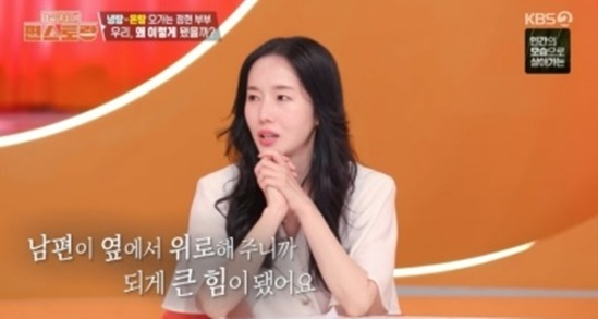 [스타뉴스|김미화기자]/사진제공='편스토랑'배우이정현이남편에게고마운마음을전했다.지난29일방송된KBS2TV'신상출시편스토랑'(이하'편스토랑')에서는만능여신이정현이제철을맞아맛도가성비도최강인식재료홍게로다양한요리를했다.찜,버터구이,라면등쉽게생각할수있는메뉴는물론홍게로밥도둑반찬게장까지만들어놀라움을자아냈다.이와함께이정현이신혼시절남편에게고마웠던사연도공개해금요일저녁안방에뭉클한감동을선사했다.이정현은홍게를넉넉하게준비했다.가을제철을맞은홍게는1kg에15000원정도로꽃게가격의절반정도밖에안되는최강가성비를자랑했다.이정현은남편이정성껏손질한홍게를넉넉하게쪘다.감칠맛이폭발하는홍게찜에이정현부부의먹방도제대로고삐가풀렸다.이어이정현이선택한요리는홍게버터구이였다.이정현남편은철판을닦아야한다는생각에좌절했지만,아내가철판에서화르르불쇼까지하며구워준홍게버터구이를아주맛있게먹어웃음을줬다.또이정현은홍게다리로기름을낸뒤끓인홍게라면으로'극강의아는맛'을완성했다.이정현의홍게요리마지막을장식한메뉴는홍게장이었다.홍게로간장게장을만든다는말에모두들의아해했지만,이정현은쉽고간단한방법으로홍게장을완성했다.3일숙성뒤맛본홍게장은비린내없이연한식감을자랑했다.꽃게내장보다맛있는홍게내장은최강밥도둑그자체.국민시식단으로출격한고규필이이정현의홍게장을맛보고"정말맛있다"라고감탄을연발했을정도.이날이정현과남편은하루에도몇번씩온탕과냉탕을오가며웃음을줬다.이정현남편은투덜대면서도아내가부탁하는홍게손질과철팔닦기를모두해줬다.이정현은남편에게직접음식을먹여주는가하면신혼시절애칭'베베'까지소환했다.이정현남편은어색해하며"평소대로해"라고반응해폭소를안겼다.티격태격하는모습까지유쾌한결혼7년차현실부부였다./사진제공='편스토랑'이어부부는연애시절,신혼시절등함께한과거를회상했다.이정현남편은"결혼하고2년동안사건의연속이었던것같다.결혼하고다음달에장모님이아프기시작하셨다"라고말했다.이정현의결혼직후친정엄마의병환이시작됐다고.이정현은"그래서신혼이많이슬펐던것같다.신혼여행가서도계속울었다"라고말했다.힘들때이정현의곁을지켜준것은남편이었다.이정현은"힘들때남편이옆에서위로해주니까큰힘이됐다.돌아가시기전까지일주일마다엄마와여행을갔다.그때신랑도휴가를내고같이다녔는데,엄마가못걸으시니까신랑이업고다녔다.그때정말고마웠다"라고밝혔다.이정현의어머니는그렇게딸의결혼후2년동안투병하신끝에하늘로떠나셨다.이후서아-서우가태어나면서이정현가족은둘에서넷이됐다.이정현은"이제부터상냥하게말할게"라며애교넘치는미소로남편을바라봐웃음을자아냈다.이날이정현은'편스토랑'에고스란히남은엄마와의통화장면을보며울컥눈물을보이기도했다.이정현은신혼,돌아가신친정엄마와의추억,서아-서우출산과육아까지'편스토랑'과함께하며감동을전했다.한편'신상출시편스토랑'은매주금요일저녁8시30분방송된다.김미화기자[email protected]©스타뉴스&starnewskorea.com,무단전재및재배포금지