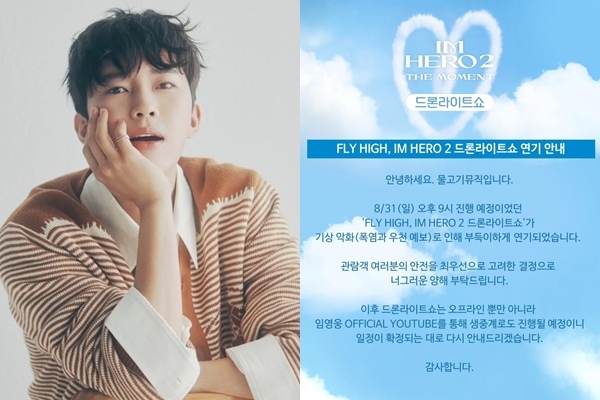 ⓒ임영웅공식SNS[스포츠한국이유민기자]가수임영웅이준비한'IMHERO2드론라이트쇼'가기상악화로인해결국연기됐다.30일임영웅의공식SNS를통해공개된공지에따르면,오는31일오후9시에예정됐던'FLYHIGH,IMHERO2드론라이트쇼'('플라이하이,아임히어로2드론라이트쇼')는태풍과우천등기상악화로인해부득이하게취소됐다.소속사는"관람객여러분의안전을최우선으로고려해내린결정"이라며"너그러운양해를부탁드린다"고전했다.이어드론라이트쇼는추후공식유튜브채널을통해생중계일정을다시공지할예정이라고알렸다.이번드론쇼는임영웅의정규2집'IMHERO2–TheMoment'(아임히어로2-더모먼트)활동과맞물려기획된이벤트로,팬들과특별한하늘위의만남을준비했으나날씨변수앞에서는아쉬움을피하지못했다.▶이하물고기뮤직공지전문안녕하세요.물고기뮤직입니다.8월31일(일)오후9시진행예정이었던'FLYHIGH,IMHERO2드론라이트쇼'가기상악화(폭염과우천예보)로인해부득이하게연기되었습니다.관람객여러분의안전을최우선으로고려한결정이오니너그러운양해부탁드립니다.이후드론라이트쇼는오프라인뿐만아니라임영웅공식유튜브(OFFICIALYOUTUBE)를통해생중계로진행될예정이며,일정이확정되는대로다시안내드리겠습니다.감사합니다.물고기뮤직드림스포츠한국이유민기자[email protected]©스포츠한국.무단전재및재배포금지.