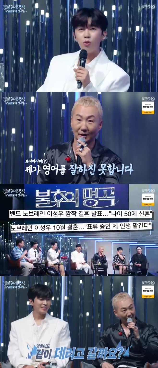 [OSEN=김채연기자]노브레인이성우가임영웅과특별한인연을고백했다.30일오후방송된KBS2TV‘불후의명곡-임영웅과친구들’에는임영웅과함께이적,린,로이킴,조째즈,노브레인,전종혁,최유리가출연해2주간시청자들을만난다.이날임영웅은‘임영웅과친구들’아이디어를직접냈다고밝혔다.그는““제가좋아하는친구들이랑다양한무대를만들면재밌겠다는생각이들어서이런기획을해보게됐다”고했다.임영웅이친구와함께하는무대는물론,이들의첫만남도직접전해질예정이다.첫번째친구와관련된키워드는‘영어’였다.임영웅은“이분이괜히‘heybro’,‘goodbye’하는친구다.저도괜히영어가나온다”고했고,이찬원은“제가알기로는최근에영어를열심히배우고있는걸로알고있다”고말했다.음악적영감도있냐는물음에임영웅은“예,음악적영감도항상받고있다”고털어놨다.그주인공은노브레인이었다.노브레인은‘넌내게반했어’를부르며등장해객석을뒤집어놨다.이성우는‘임영웅이노브레인덕에영어가늘었다’는말에“제가딱보기에도영어를잘하는사람은아니다.제가10월에결혼을한다”고말했고,객석에서는‘축하해’라며박수를보냈다.이에이성우는“영웅이도같이데리고갈까요?갈때됐잖아요”라고너스레를떨어객석의야유를받았고,이어임영웅은“형수님께서제영어선생님이다”라고설명했다.이성우는“밥먹다가갑자기영어를배우고싶다고해서,‘누나가르쳐주시면안돼요?’해서인연이이어졌다.그거없었으면제가이자리에없었을거다”라고웃었다.임영웅은이성우의예비신부에대해“형님이원래결혼생각이없었다.갑자기결혼얘기를했을때제가너무좋더라.형수님이천사같은분이고아름다우시고천사같다.어떻게형이랑이렇게잘맞지?할정도로제가다기분이좋다”고털어놨다.‘학생임영웅’은어떠냐는말에이성우는“제가살짝듣기로는진도가빠르지않다고하더라.되게열심히한다더라.근데머리를엄청쥐어뜯는다더라.탈모가오면영어때문이다”고말해웃음을자아냈다./[email protected][사진]방송캡처Copyright©OSEN.무단전재및재배포금지.