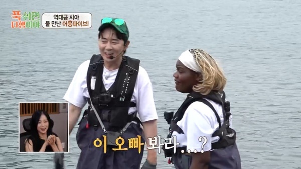 MBC‘푹쉬면다행이야’캡처MBC‘푹쉬면다행이야’캡처[뉴스엔유경상기자]파트리샤가붐에게극대노했다.9월1일방송된MBC‘푹쉬면다행이야’(이하‘푹다행’)에서는붐,양세형,김희재,파트리샤,ZB1박건욱이어흥파이브를결성했다.양세형,김희재,박건욱이머구리가됐다.해군출신김희재가먼저전복을잡으며활약했다.양세형은전복과소라를동시에잡았다.전날문어를잡은박건욱도심기일전전복을잡았다.박건욱은전복을마이크삼아공연을펼쳤고양세형은돌고래대신쇼를벌이며흥이폭발했다.양세형은꼬챙이로성게도잡았고붐은“내가본성게중에제일크다”고감탄했다.파트리샤는걸스데이‘달링’노래를틀어놓고춤을추며응원했다.파트리샤가하이라이트부분댄스를추려하자붐이음악을뚝꺼버려춤을막았다.파트리샤는하이라이트부분이라며극대노하는반응으로웃음을자아냈다.이후어흥파이브는힘을합쳐서문어도잡았다.(사진=MBC‘푹쉬면다행이야’캡처)뉴스엔유경상yooks@기사제보및보도자료[email protected]ⓒ뉴스엔.무단전재&재배포금지Copyright©뉴스엔.무단전재및재배포금지.