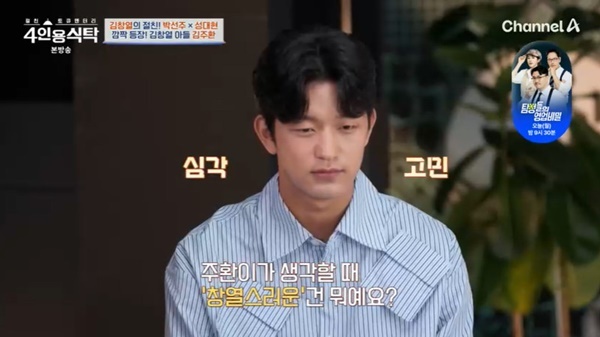 채널A‘절친토큐멘터리4인용식탁’캡처채널A‘절친토큐멘터리4인용식탁’캡처[뉴스엔유경상기자]김창열아들김주환이창열스럽다는표현에대해말했다.9월1일방송된채널A‘절친토큐멘터리4인용식탁’에서는가수김창열이절친박선주,성대현을초대했다.김창열은음식양이적어생긴창렬스럽다는표현에상처받은경험을밝히며푸짐한밥상을차려절친들을맞았다.김창열은푸짐한밥상이새로운창열스럽다의뜻이되기를바랐다.이에박경림은김창열아들김주환에게“오늘주제가창열스러운밥상이다.주환이가생각할때창열스러운건뭐냐”고질문했다.김주환은“그말을잘사용해서재미있는글을보면저도웃는다.유행어잖아요”라고반응했다.박선주는“나도딸이이런스타일이다.굳이깊게심각하게생각하지않는다.얼마전에엄마옷어때?3주야식먹고어제새벽3시에잔느낌?뚱뚱해보이고안어울린다고말하더라”고쿨한자녀들의반응을말했다.박경림도“어벤져스행사때인이어때문에무능한진행이라는말을들은적이있다.아들이웃으면서엄마무능한진행하셨다면서요?지금고1이다”고말했다.김주환은“따로보고있긴하다.사람들이말하는단어와아빠를동일시하지않는다.사람들은적절한표현을찾는거다.아빠가F여서마음고생이심할거라고생각했는데가족들앞에서는티를안내셨다”고말했다.(사진=채널A‘절친토큐멘터리4인용식탁’캡처)뉴스엔유경상yooks@기사제보및보도자료[email protected]ⓒ뉴스엔.무단전재&재배포금지Copyright©뉴스엔.무단전재및재배포금지.