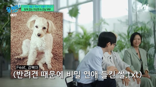[스타뉴스|김미화기자]/사진='유퀴즈'강남과이상화가열애를들키게된계기를말했다.3일방송된tvN예능'유퀴즈온더블럭'309회에는강남과이상화가부부동반으로출연했다.빙상여제이상화와강남부부는이날스튜디오에서결혼7년차에피소드를전했다./사진='유퀴즈'이날오랜만에유재석과재회한강남은"턱깎았나.왜이렇게얼굴이작아졌나"라는돌발멘트로시작부터현장을웃음바다로만들고,이상화는남편의자유분방한입담을단호하게제어했다./사진='유퀴즈'이상화와강남은열애를들키게된계기에대해반려견강북이때문이었다고밝혔다.당시강남집에서촬영을할때태진아,고송대관등트롯트가수선배들이왔는데강북이가낯선사람을보고짖었다고.이어이상화가집에오자강북이는너무나반가워하며이상화의무릎위에앉아서이상화를핥고반가워하는모습이라당시부터열애를눈치챈사람들이있었다고밝혔다.이상화는"저도너무당황했다.'니가그말로만듣던강북이구나'라고했다"라고말했고강남은"어제도같이있다가갔는데너무어색했다"라고덧붙여웃음을자아냈다.김미화기자[email protected]©스타뉴스&starnewskorea.com,무단전재및재배포금지
