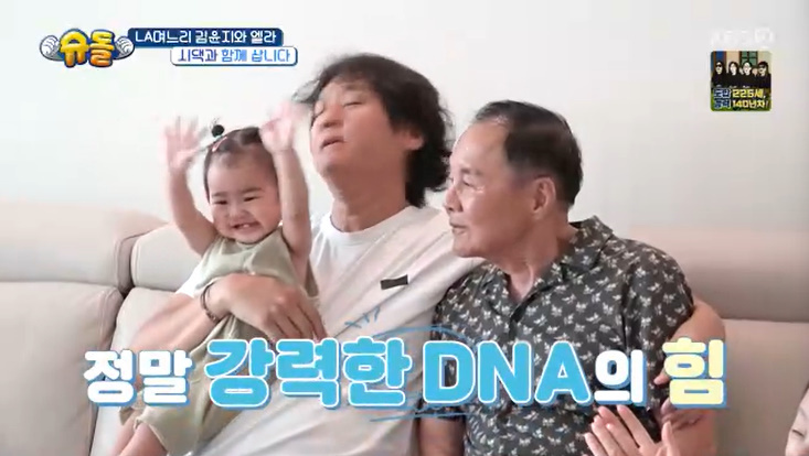 '슈퍼맨이돌아왔다'3일방송KBS2TV'슈퍼맨이돌아왔다'캡처(서울=뉴스1)이지현기자=김윤지딸이할아버지이상해와똑닮은외모로놀라움을줬다.3일오후방송된KBS2TV예능프로그램'슈퍼맨이돌아왔다'에서는가수겸배우김윤지가딸엘라등가족과의일상을공개했다.이날같은아파트,다른층에거주하는시부모님이집에찾아왔다.김윤지의시부모님은코미디언이상해,국악인김영임부부로잘알려져있다.김윤지가"정말많은도움받으면서아이키우고있다"라며감사를표했다.KBS2TV'슈퍼맨이돌아왔다'캡처특히김윤지딸이할아버지품에안기면서껌딱지면모를보였다.이상해가행복한미소를지었다.이를지켜보던김윤지가"아버님이보시기에도희서랑닮으신것같나?"라고궁금해했다.누가봐도강력한DNA였기때문.그러나이상해가"뭐희서(엘라)가할아버지를닮아~나닮았다고하면쟤가기분나쁘지"라는반응을보였다.영상을지켜보던개그우먼안영미가"속으로는기분좋아하실것같다"라고말했다.김윤지가고개를끄덕이며"항상(표정은)웃고계신다"라고거들었다[email protected]©뉴스1.Allrightsreserved.무단전재및재배포,AI학습이용금지.