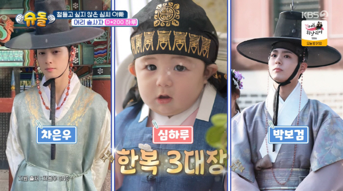 [스포츠조선닷컴정안지기자]배우심형탁의아들하루가인형같은비주얼을뽐냈다.3일방송된KBS2'슈퍼맨이돌아왔다'에서는200일을맞은심형탁의아들하루의일상이공개됐다.이날심형탁은"200일이정말순식간에흘러갔다.앞으로펼쳐질미래가더욱기대가된다"며하루와하루하루새로운추억을쌓아온나날들을떠올렸다.그때심형탁은도라에몽포스터를꺼내궁금증을자아냈다.심형탁은"굉장히소중한친구이기도했지만에몽이가있었기에아내와결혼했다"며사야와의첫만남에도라에몽의지분이100%였다고밝히며사야와의러브스토리를공개했다.그는"2019년일본도라에몽뮤지엄촬영가는날이었다.그때촬영을가지않았다면아내의존재를평생몰랐을거다"며"당시행사책임자였던사야를보고첫눈에반해애절한구애끝에결혼했다"고떠올렸다.이어심형탁은"아내도움없이내힘으로아이의발도장을만들고싶었다.에몽이발안에부자의발을찍고싶었다"며200일을기념해성장한하루의발도장을에몽이의발안에찍기위한작업에착수했지만다소어설픈성공으로웃음을안겼다.또한심형탁은하루하루다르게성장하고있는하루의200일기념촬영을위해나섰다.100일사진을찍었던스튜디오를다시찾은심형탁은"많이크지않았냐.너무예쁘지않냐.내자랑이다.나자랑할거이거밖에없다"며시작부터아들자랑으로웃음을안겼다.하루는한복디자이너박술녀가특별히선물했다는한복을곱게차려입고촬영에나섰다.그러나어리둥절한채울먹이던하루.이에심형탁은잘자라고불러주던노래를불렀고,하루는바로안정감을되찾았다.그때하루는복건에버선까지풀장착,박보검과차은우를잇는꽃도령으로빛나는미모를뽐냈고,박수홍은"하루얼굴에뭔가있다"라며하루의비주얼에감탄을연발했다.최지우도"우리하루도한외모한다"고했고,심형탁은"저렇게만컸으면좋겠다"며웃었다.또한하루는일본전통의상인하카마를입고방긋방긋웃으며숨막히는귀여움을발산했다.여기에풍성한머리숱으로'몬치치'를닮았다는별명을얻은하루는'인간몬치치'로변신해인형인지사람인지구분이안될정도의놀라운싱크로율200%를자랑,최지우는"어머세상에너무귀엽다"라며하루앓이에푹빠졌다.이후심형탁은사진작가를향해"하루의컨디션과비주얼은상위몇프로냐"라고물으며팔불출아빠의면모를드러냈고,"비주얼도상위1%,컨디션도상위1%"라는답을받아낸뒤너털웃음을터뜨려주변모두를웃음짓게했다[email protected]©스포츠조선.무단전재및재배포금지.