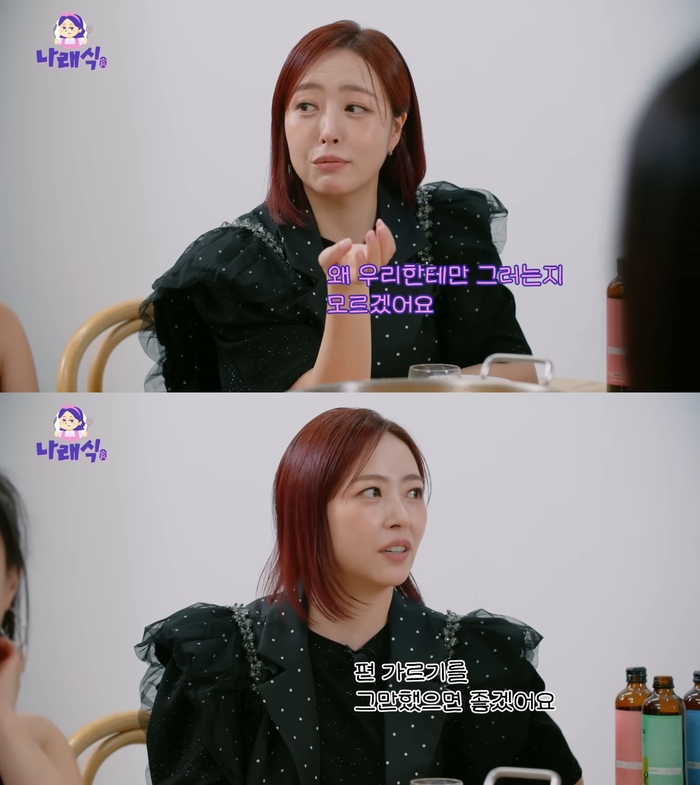 ‘나래식’.사진I유튜브채널‘나래식’캡처그룹베이비복스심은진이불화설을언급했다.3일유튜브채널‘나래식’에는베이비복스가게스트로출연했다.이날김이지는‘가요대축제’출연이후콘서트제안이많이들어왔다며“‘가요대축제’이후에관심을많이받을거라는생각을못했기때문에거기까지는마음의준비가돼있지않았다.그런데지금안하면이미모도유지못할거고‘이런기회가또올까’라는생각이들어서같이이야기를했다.마음이뭉치니까배려하면서되긴했다.그래서되게고마웠다”고이야기했다.윤은혜는“이게어떻게들릴지모르겠지만얼마전에언니들4명이행사를했다.그런데거기에내가포함이안돼있으니까댓글이엄청달렸다”고말했다.심은진은“왜우리한테만그러는지모르겠다.다른그룹들도그러는데.편가르기를그만했으면좋겠다”고불만을토로했다.윤은혜는“2명이나3명이나갈수도있는거아니냐.그렇게라도오랫동안베이비복스를계속보여줄수있는게좋다고생각한다”고했다.[이세빈스타투데이객원기자]Copyright©스타투데이.무단전재,재배포및AI학습이용금지