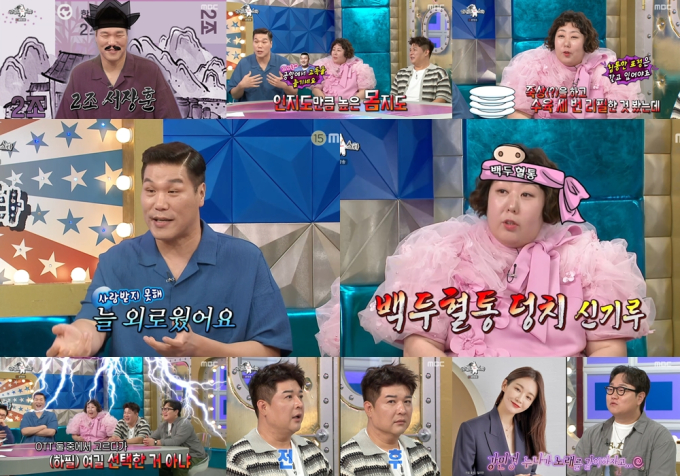 예능‘라디오스타’(제공:MBC)‘라디오스타’에서장훈,신기루,신동,나선욱이출연해풍성한입담으로웃음과공감을선사,안방극장을사로잡으며최고시청률4.9%를기록했다.동시간대가구시청률과2049시청률모두1위를차지하며화제성까지입증했다.지난3일방송된MBC‘라디오스타’는서장훈,신기루,신동,나선욱이출연한‘올덩치프로젝트’특집으로꾸며졌다.4일닐슨코리아에따르면930회는가구시청률3.9%를기록하며수요일동시간대1위를차지했다.광고관계자주요지표인2049시청률역시1위를기록했다.‘최고의1분’은신기루가경조사맛집BEST3를공개하며장례식장에서수육을세번리필해먹은‘경조사루틴’을소개한장면으로,4.9%까지치솟았다.서장훈은농구코트의‘국보급센터’에서‘예능황제’로변신한근황을솔직히풀어놨다.그는최근들어눈물이많아진이유를언급하며“원래도감성적인데나이들면서더감정이풍부해졌다”라고고백했다.그는드라마‘폭싹속았수다’를보고펑펑울었다는일화와함께,절친민경훈의결혼식에서도눈물을흘린사연을전하며따뜻한인간적인면모를드러냈다.서장훈은“‘아는형님’을10년함께한후배가결혼하는모습이대견하면서도뭉클했다.서약서를읽는순간눈물이참을수없이흘렀다”라고회상해공감을자아냈다.또한그는방송도중성대결절진단을받은사실도공개했다.“‘무엇이든물어보살’이나‘이혼숙려캠프’같은프로그램에서시청자사연에몰입해화내고위로하다보니목이상했다”라며방송에임하는진심어린태도를드러냈다.이어김희철때문에퍼진‘재산2조설’등황당한루머에대해“기사만나면‘2조거인’이라고붙는다.돈빌려달라는편지까지온다”라며억울함을토로해웃음을안겼다.하지만그는“예능을하는이유는결국사랑받고싶어서다.농구에서는느끼지못한따뜻한시선을방송에서받는다”고고백하며출연자와시청자모두를뭉클하게만들었다.신기루는특유의솔직한입담으로‘최고의1분’주인공이됐다.그는“경조사맛집BEST3는따로있다”라며장례식장에서수육을세번리필해먹은‘경조사루틴’을공개해폭소를유발했다.그는“저는경사나조사에가면많이먹어야한다고하더라.그래서슬픔을억누르면서먹었다.그래도웃으면서먹진않는다”라며나름의예의를밝혔다.그가꼽은경조사맛집은다음과같았다.그는“최근1~2년사이가장맛있던곳이강재준과이은형아들돌잔치날한정식코스가갈비찜이랑미역국이나오는데정말맛있었다”라며1순위로꼽았다.이어두번째로조세호의결혼식을,세번째는신촌에있는장례식장의기본음식구성과수육,홍어초무침의조합을칭찬했다.장도연은“신기루가장례식장에서울상을하고수육을세번리필한걸봤다”라고말해웃음을안겼다.김준호-김지민의결혼식에피소드도폭소를유발했다.그는“얼마전에김준호,김지민결혼식에갔는데이영자랑김준현이있더라.그래서그날잘못앉아서좌절했다.감사하게도이영자가스테이크를양보해줬다”라고말했다.여기에신기루는합정동상권부흥에기여한일화도공개했다.동네맛집을찾아촬영했던그의유튜브콘텐츠로인해해당식당들이큰인기를얻었는데이에“맛있게먹었을뿐인데장사가잘되니감사했다”라며훈훈함을자아냈다.신동은슈퍼주니어데뷔20주년을맞아3만관객을동원한서울콘서트와해외투어뒷이야기를전했다.마스크를쓰고있었는데,팬들이얼굴이아닌몸을보고먼저알아봤다며‘몸인지도1위’굴욕담을전해스튜디오를웃음바다로만들었다.신동은“시원,이특셋이서유닛을냈다.원래동해랑은혁이낸D&E유닛이있다”라면서공연장을잡았다가스케줄이안돼난감했던사연을전했다.그는“마침셋이일정이없어서우리셋이했다가4천석매진을하고,일본에서도콘서트를추가로돌았다.그래서내년에는L.S.S로유닛활동도할거다”라고밝혀모두를깜짝놀라게했다.또한‘뽀뽀뽀’출연당시유두수술을했던충격고백으로모두를놀라게했다.신동은음악징크스와예능하차사연까지털어놓으며꾸밈없는매력을드러냈다.이어‘아이돌포즈전수’시간에는“사진은각도가생명이다.이렇게찍으면가장날씬해보인다”라며현장에서직접시범을보여MC들의감탄과폭소를동시에자아냈다.나선욱은지난‘라디오스타’출연이후달라진일상을공개해눈길을끌었다.나선욱은당시함께출연한스윙스앞에서‘헛스윙스’캐릭터로유쾌함을선사했는데스윙스와전화번호를공유하며유튜브콘텐츠도함께했지만,콘셉트가맞지않았는지촬영이후연락이되지않는다고아쉬움을전해웃음을유발했다.이후각종러브콜과34kg감량성공후달라진일상과자신감을공개했다.“건강과체력이완전히달라졌다”라며‘개그계메기남’을노린다고선언해눈길을끌었다.또한가수강민경에게듀엣제안을받았다고해모두를놀라게했다.나선욱은"강민경누나께서‘노래하는뚱시경’을보고노래를한곡같이하자고했는데,당시스케줄이안맞아서제가감히거절했다"라고밝혔다.나선욱은강민경에게직접전화가온상황을설명했다.결국콘텐츠촬영을진행했고,함께한듀엣콘텐츠가큰성공을거뒀다고밝혀웃음을안겼다.이밖에도나선욱은강민경의추천으로장도연이진행하는유튜브콘텐츠‘살롱드립2’에출연한