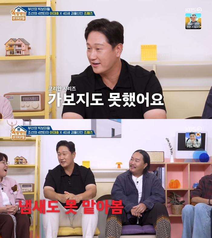 ‘옥탑방의문제아들’.사진IKBS2‘옥탑방의문제아들’방송캡처전야구선수이대호가한국시리즈를언급했다.4일방송된KBS2‘옥탑방의문제아들’에는이대호,조째즈가게스트로출연했다.이날송은이는“이대호가한국시리즈우승반지가없다는데진짜냐”고입을열었다.이대호는“한국시리즈우승반지가없는게아니고한번도가보지를못했다.냄새도못맡아봤다”고해모두를놀라게했다.주우재는“이래서이미지가중요하다.이대호는우승을달고산사람같다”고말했다.양세찬역시“이대호는우승한것같다”고했다.이대호는“한국시리즈이야기가나오면할말이없다.그분위기를모른다”며씁쓸한미소를지었다.한편‘옥탑방의문제아들’은매주목요일오후8시30분방송된다.[이세빈스타투데이객원기자]Copyright©스타투데이.무단전재,재배포및AI학습이용금지