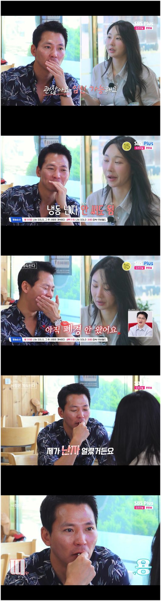 [OSEN=오세진기자]‘나는SOLO,그후사랑은계속된다’24기옥순은지지않았다.3일방영한ENA,SBSPlus예능‘나는SOLO,그후사랑은계속된다’(이하‘나솔사계’)에서는지난주0표를받았던24기옥순이23기순자와26기순자의첼로연주를듣고우는장면에서부터시작했다.24기옥순은“첼로소리도슬프고,0표받은것도슬펐다.열심히안한제탓도있는것같다”라며말했다.그러나미스터나는24기옥순에대한마음을놓지않았고,그러는사이슈퍼데이트권쟁탈전이벌어졌다.25기옥순,미스터제갈,11기영숙,미스터권,26기순자다섯명이따냈다.24기옥순은“내가못따내면슈퍼데이트를받아내면된다”라며특유의긍정적인마인드로말했다.24기옥순에게슈퍼데이트권을쓴건미스터제갈이었다.미스터제갈은“슈퍼데이트권사용은제작진에게만말했다.이제당사자에게말하려고한다.이제너한테말할거다.너한테쓸거다”라고말했다.이를듣고24기옥순은미스터권에게“오빠안썼으면저한테데이트권써주세요”라고말해미스터권을흔들어놓았다.바로다음주예고편에서24기옥순은“나난자얼렸거든요?자연임신가능해요.냉동난자안써도돼요.아직폐경안왔어요”라며미스터제갈을흔들어놓으며모두를깜짝놀라게만들었다./[email protected][사진출처]ENA,SBSPlus예능‘나는SOLO,그후사랑은계속된다’Copyright©OSEN.무단전재및재배포금지.
