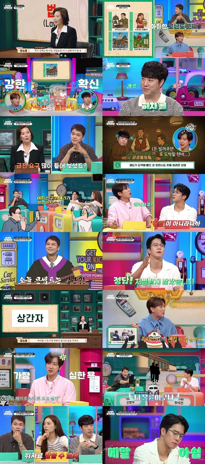 ‘브레인아카데미’의‘브레인즈’가‘법분야’에서도환상의퀴즈케미를선보였으나,아쉽게도지식메달획득에는실패했다.4일(목)밤9시40분방송한채널A지식충전퀴즈쇼‘브레인아카데미’15회에서는‘브레인즈’전현무-하석진-이상엽-윤소희-황제성-궤도가‘법마스터’양소영변호사가낸퀴즈중한문제를놓쳐지식메달획득에실패하는현장이담겼다.그럼에도이들은‘유언’부터‘불륜’까지도파민이폭발하는퀴즈들에맞서,완벽한합과‘집단지성’을보여줘안방극장에짜릿함을선사했다.이날양소영변호사가‘마스터존’에오르자,황제성은“변호사님도뒤통수를맞아본적이있냐”고물었다.양소영변호사는“있다.직원횡령과외뢰인에게도뒤통수를맞아봤다”면서“그래서오늘주제를‘모르면당한다!나를지키는필수생활법률’로정했다”고밝혀기대감을심겼다.‘브레인즈’는총7개의문제키워드중‘생활상식’을먼저택했다.양소영변호사는“다음중불법이아닌행동을고르라”며‘1.군복중고로팔기’,‘2.수제향초선물하기’,‘3.일반도로에서말타기’,‘4.샛길로빠져등산하기’를보기로제시했다.궤도는자신의‘프로그램하차’를걸고“3번은불법”이라고강조했으나,의외로3번이불법이아니었다.이에궤도는“하차까지는아닌것같다”고말을바꿔폭소를안겼다.다음으로‘브레인즈’는‘빌려준돈’키워드를택했다.양소영변호사는“돈을빌려줬을때안전하게돌려받을수있는사례는?”이라는문제와함께,‘1.돈을빌려주고10년후처음갚으라고독촉한현무’,‘2.차용증은안쓰고제성의부모님계좌로송금한석진’,‘3.현금으로빌려주고꼭갚으란문자메시지를남긴소희’,‘4.궤도가도박에빠진걸알면서도돈을빌려준상엽’을보기로냈다.이에황제성은“4번은너무팩트아닌가?”라며‘궤도몰이’에시동을걸었고,전현무도“보기에실제사례가나오면어떡하냐”고거들어현장을뒤집었다.그사이멤버들모두가입을모아“3번이너무확실하다”고외쳐정답을맞혔다.예능티키타카는물론‘집단지성’까지터진상황속,다음키워드로‘불법촬영’이선택됐다.양소영변호사는“영상통화중알몸으로옷을입는여자친구의모습을동의없이녹화한남친은불법촬영으로처벌받았을까?”라는퀴즈를출제했다.윤소희는곧바로“촬영과녹화의차이가있는것같다”고던졌고,하석진역시“불법이지만‘촬영’은아니니까..”라고덧붙여‘무죄’로정답을맞혔다.‘브레인즈’는다음키워드로‘유언’을선택했다.양소영변호사는“법적으로유효한유언방식은?”이라며‘1.휴대전화로혼자녹음한유언’,‘2.자녀와함께찍은유언영상’,‘3.미성년자자녀가대필한유언장’,‘4.공증받지않고혼자쓴자필유언장’을보기로냈다.하석진은“1,4번중정답이있는데하나는목소리,하나는글씨”라고정리했고,윤소희는“글이고치기어려우니답은4번!”이라고풀이해정답사냥에성공했다.환상적인‘추론티키타카’가터져짜릿함을안긴뒤엔,드디어‘상간자’키워드로넘어갔다.양소영변호사는“다음중합법인것은?”이라며“1.상간자직장에‘축생일상간자’를쓴케이크배달”,“2.상간자아파트에불륜폭로현수막설치”,“3.사내게시판에남편과상간녀불륜사실폭로”,“4.상간자직장에손해배상청구소송소장발송”을예시로들었다.황제성은“1번은축하니까괜찮으려나..”라며‘반전브레인’답게엉뚱한추론을얹어폭소를안겼고,전현무는“공개적인망신이아닌건4번”이라고콕집어정답을맞혔다.‘상간자’에이은키워드는‘불륜’이었다.양소영변호사는상대방이불륜을저질렀을때억울함을덜어줄‘불륜대처법’을전수하면서“불륜증거를합법적으로수집하는방법은?”이라는문제를냈다.보기로는‘1.배우자의차량에몰래GPS위치추적기를부착’,‘2.배우자와상간자가숙박업소에출입하는모습을촬영’,‘3.배우자앞으로상간자가보낸편지를뜯어서확인’,‘4.배우자의휴대전화잠금을풀어주고받은메시지를저장’이라는내용이주어졌다.‘브레인즈’는이번에도서로주고받으며‘2번’정답을맞혔고,하석진은“오히려피해자가어려운것같다”며‘찐’한탄을내뱉었다.끝으로‘위자료’키워드만남은가운데,양소영변호사는아내가집나간남편이외도한사실을모른채시어머니를9년간봉양한사례를소개한뒤,“시어머니는아들의외도사실을알고도며느리를9년간속였다.혼인파탄을이유로며느리가시어머니에게위자료를받을수있을까?”라고물었다.전현무는“혼인파탄이유는남편한테있으니위자료못받았을것”이라고주장했지만황제성은“시어머니가이득을취했으니까받았을것”이라며반대의견을냈다.그럼에도전현무는“말도안되지만시어머니는오히려혼인을유지시켜준것”이라며위자료를못받았다고결정했다.그러나오답이었고,마지막문제를놓쳐지식메달획득에실패한뒤전현무는“그래도위자료를받으셨다니기분은좋다”며정신승리해웃음을안겼다.대한민국최고의석학들이출제하는고품격퀴즈를맞히며‘지식메달’에도전하는지식퀴즈쇼인채널A‘브레인아카데미’는매주목요일밤9시40분방송된다.사진=채널A‘브레인아카데미’Copyright©채널A.Allrightsreserved.무