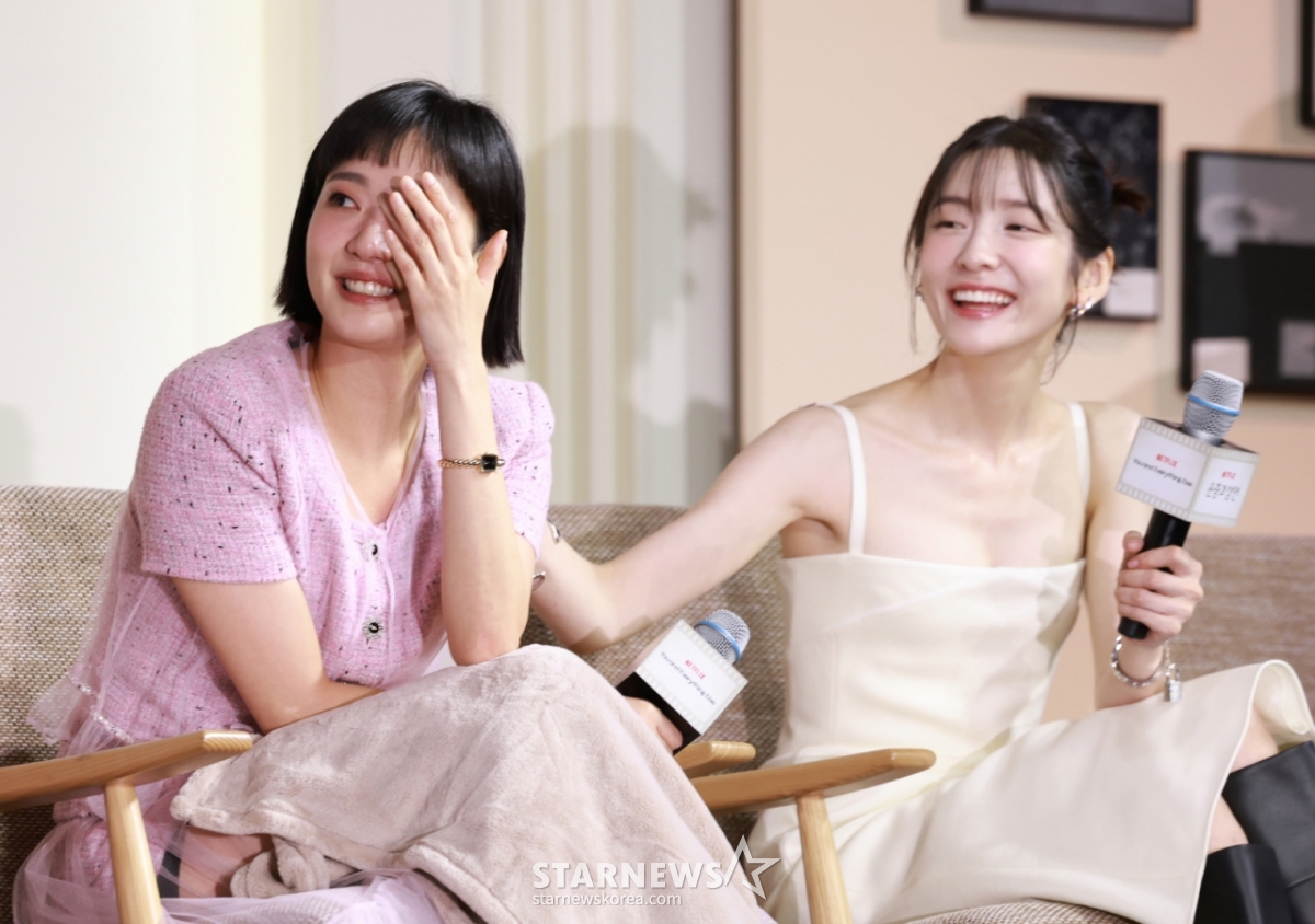 [스타뉴스|김미화기자](서울=뉴스1)권현진기자=배우박지현(오른쪽)이5일서울중구앰배서더서울풀만호텔에서열린넷플릭스시리즈'은중과상연'제작발표회에참석해눈물흘리는김고은을위로하고있다.'은중과상연'은매순간서로를가장좋아하고동경하며,또질투하고미워하며일생에걸쳐얽히고설킨두친구,은중(김고은분)과상연(박지현)의모든시간을마주하는이야기를그렸다.2025.9.5/뉴스1Copyright(C)뉴스1.Allrightsreserved.무단전재및재배포,AI학습이용금지./사진=(서울=뉴스1)권현진기자배우김고은과박지현이울고웃으며감정을나눴다.5일오전서울중구앰배서더서울풀만호텔에서넷플릭스시리즈'은중과상연'제작발표회가열렸다.이날행사에는배우김고은,박지현,조영민감독이참석했다.'은중과상연'은매순간서로를가장좋아하고동경하며,또질투하고미워하며일생에걸쳐얽히고설킨두친구,은중과상연의모든시간들을마주하는이야기이다.김고은은작품선택이유에대해"처음에대본은4부까지받았다.잔잔한작품이라고이야기들어서,처음읽으면서너무잔잔한가했는데깊이나서사가쌓여가는과정이마음을많이움직였다.왜5부대본이없냐고하면서하게됐다"라고말했고박지현은"저는그전에조영준감독과작품을해봤고,너무존경하는고은언니가한다고해서믿음이충만했다.대본을받았을때도상연이가진서사가와닿았고표현하고싶은부분이많아서당연히해야한다는느낌이었다"라고밝혔다.김고은은"은중이는상연이를멋있어하고동경하는인물이다.상연이는나와다르게특별하고빛난다고생각한다.질투보다는동경과부러움이훨씬크다.멋진친구를좋아하는마음을가지고있다"라며"작품속에서20대,21살대학생연기를했다.그나잇대는아직도10대같은분위기가남아있는나잇대라고생각한다.그래서제가어릴때어땠는지찾아보니까볼살이통통하더라.연기를위해서살을찌우고볼살이통통하게연기했다"라고전했다.[서울=뉴시스]김혜진기자=배우김고은이5일오전서울중구앰버서더서울풀만호텔에서열린넷플릭스시리즈'은중과상연'제작발표회에서포즈를취하고있다.'은중과상연'은매순간서로를가장좋아하고동경하며,또질투하고미워하며일생에걸쳐얽히고설킨두친구,은중과상연의모든시간들을마주하는이야기.오는12일공개된다[email protected]/사진=김혜진두사람은10대부터20대,30대,40대까지변화화는관계를그려내며스펙트럼넓은연기를펼친다.특히40대가돼서만난두사람은농익은감정연기로시청자를사로잡을예정이다.박지현은"40대에은중을다시만난상연은죽음에동행해달라고한다"라고담담하게말했다.박지현의이야기를들은김고은은"은중은친구에게부탁받고고민을깊게한다"라고말하며눈물을흘리기시작했고,이후얼굴을가린채폭풍오열했다.김고은은"이게제눈물버튼이다.그래서되게소중한작품이라는생각이많이든다"라며"(작품속에서)어떻게내가보내줄수있을까.잘보내주고싶다.그런고민을했다"라고계속눈물을흘리며"아이고참죄송합니다"라고했다.(서울=뉴스1)권현진기자=배우박지현이5일서울중구앰배서더서울풀만호텔에서열린넷플릭스시리즈'은중과상연'제작발표회에참석해포즈를취하고있다.'은중과상연'은매순간서로를가장좋아하고동경하며,또질투하고미워하며일생에걸쳐얽히고설킨두친구,은중(김고은분)과상연(박지현)의모든시간을마주하는이야기를그렸다.2025.9.5/뉴스1Copyright(C)뉴스1.Allrightsreserved.무단전재및재배포,AI학습이용금지./사진=(서울=뉴스1)권현진기자박지현은"고은언니가제앞에서은중이로서함께해줬기때문에할수있었다.상연이한테은중이같은존재처럼고은언니도저에게그런존재라몰입해서연기했다"라고밝혔다.김고은은"지현이가상연이라다행이라는감정을수도없이느꼈고,그든든함은말로표현이안된다.작가님을처음만났을때이야기가어떻게흘러갈지이야기해줬는데남아있는사람들의이야기일수도있다는이야기해줬다"라며"상연과동행할때도이후의상황에남아있는나를많이생각했다.그마음이가장컸다"라고덧붙였다.두사람이작품속은중과상연처럼서로를선망하거나원망한순간이있을까.박지현은"제가고은언니를질투하는것은아니고부러워한다.질투와부러움이비슷하지만제가부러움을받아들이고,따라하려고노력한다.언니를따라하다보면저도언젠가언니같은배우가되지않을까생각하다.제가너무존경하고사랑하는언니다"라고밝혔다.[서울=뉴시스]김혜진기자=배우김고은(왼쪽부터),조영민감독,박지현이5일오전서울중구앰버서더서울풀만호텔에서열린넷플릭스시리즈'은중과상연'제작발표회에서포즈를취하고있다.'은중과상연'은매순간서로를가장좋아하고동경하며,또질투하고미워하며일생에걸쳐얽히고설킨두친구,은중과상연의모든시간들을마주하는이야기.오는12일공개된다[email protected]/사진=김혜진이에김고은은"몇살차이도계속존경한다고해주니정말너무고맙다.지현이가저를정말되게좋아해주는것이느껴져서,이렇게사랑받아도되나싶을정도로고맙다"라며"서로좋은이야기는많이했으니저는원망한것에대해이야기하고싶다"라고말했다.김고은은작심한듯한표정으로"저는피곤하면잘붓는다.그런데지현이는안부어요"라며"촬영