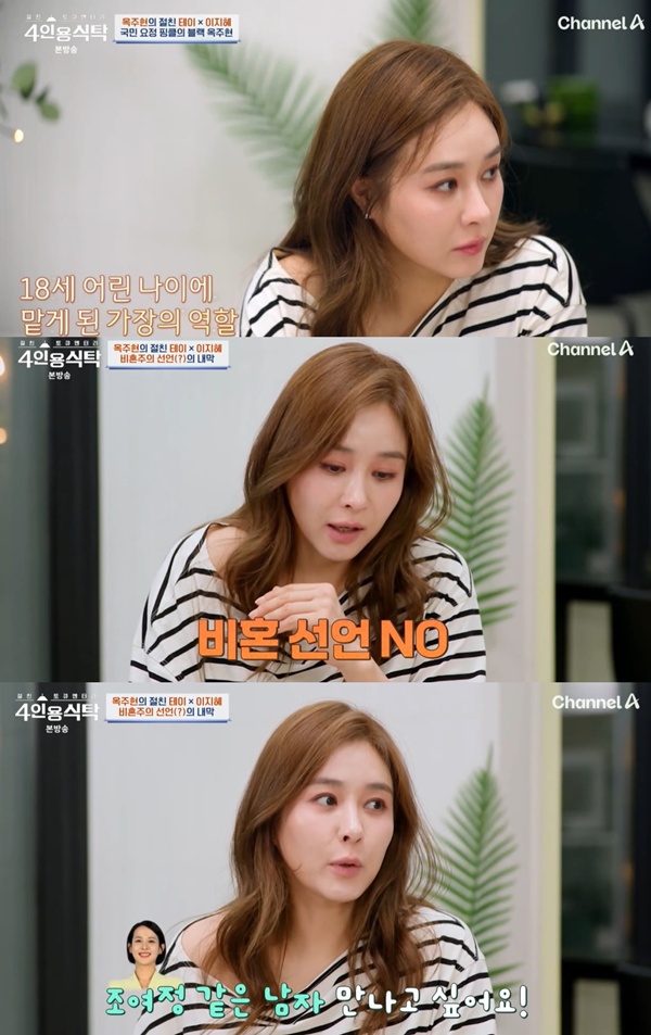 4인용식탁옥주현/사진=채널A캡처[스포츠투데이임시령기자]'절친토큐멘터리4인용식탁'옥주현이비혼주의에대해밝혔다.8일방송된채널A'절친토큐멘터리4인용식탁'에서는핑클출신뮤지컬배우옥주현이출연해가수테이,뮤지컬배우이지혜와여러이야기를나눴다.이날옥주현은"용돈받으면가족선물다챙겼다.용돈뺏길바엔나한테쓰도있었다"고말했다.이어그는어린나이에아버지를여의고어머니곁에서가장이자,남편역할을맡아왔던것에대해"버거워서결혼도고민하게됐다"고털어놨다.옥주현은"비혼을선언한것은아니다.나머지세명은결혼을하지않았냐.멤버들결혼질문에지금은안하고싶어라고답한거다.분명히그질문이여러파장이있을것이라예상해그냥선을그어버린것도있다.정해놓지않았지만서로의곁을내어준다는건쉽지않구나를더알게됐다"고얘기했다.그러면서옥주현은"배우조여정같은사람을만나고싶다"며"배울점이많고의지하고싶은사람이이상형이다.조여정같은남자가있으면결혼하고싶다"고고백했다.[스포츠투데이임시령기자[email protected]]Copyright©스포츠투데이.무단전재및재배포금지.