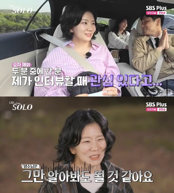 ⓒENA,SBSPlus'나는솔로'[스포츠한국신영선기자]'나는솔로'28기영수가하루도지나지않아두솔로녀들의마음을잃었다.10일방송된ENA,SBSPlus'나는솔로'에서는첫인상선택후숙소로이동한뒤장을보는28기솔로남녀들의모습이그려졌다.이날영수는영숙,영자,순자의선택을받아다함께차를타고숙소로향했다.그는뒷자리에앉은영자,영숙을보며"두분중에한분,제가인터뷰할때관심있다고말했다"며순자를소외시켰다.장을보겠다고나선영수는술을잘마시지않는영자,영숙을위해무알코올맥주와과일맛소주를사오겠다고약속했다.그는영숙이"자금봐서하자.중요한메인을먼저사야한다,고기"라고하자"메인은술이다.먹을건떨어져도술은떨어지면안된다"면서순자에게동의를구했다.뒷자리에앉은영자,영숙의표정이어두워진가운데음주를즐기는순자는영수와술얘기를하며웃었다.영수는"술상무하시면되겠다.제가임명이런거잘한다"며상기된목소리로술얘기를이어갔다.순자는제작진과의인터뷰에서영수에대해"많이알게된것같다"면서"리더십강하다.제취향은리더성향을좋아하는건아니다.그만알아봐도될것같다"고말했다.ⓒENA,SBSPlus'나는솔로'잠시후영수는영숙,영철과함께장을보러갔다.그는혼자앞서나가며눈에보이는제품들을카트에쓸어담다시피했다.이를본영숙은당황했고,카트안에있는물건을더저렴한묶음상품이나할인중인상품으로바꿔넣었다.영수가본장은제작진이준카드한도인100만원을넘었다.그는100만원을초과하는금액은사비로결제하겠다고했지만제작진이준카드로결제해도괜찮다고하자"앗싸"를외치며좋아했다.영숙은인터뷰에서"성격이급한것같은느낌을받았다.제가좀급하다.상대방은안급했으면좋겠다.영수님은운전하실때도급해보였다"며"경솔하시진않을까걱정이됐다"고말했다.반면영수는뭐든빨리해야하는급한성격인자신을보완해줄차분하고꼼꼼한성격을봤다며영숙을더알아보고싶다고밝혔다.스포츠한국신영선기자[email protected]©스포츠한국.무단전재및재배포금지.