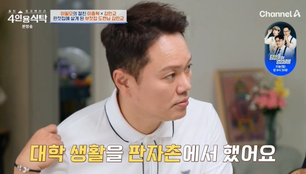 (엑스포츠뉴스한채은기자)이필모와김민교가대학시절삼각관계에피소드를공개했다.15일방송된채널A'절친토큐멘터리-4인용식탁'에는27년차배우이필모가출연했다.이날이필모는서울예대93학번동기이자32년지기인절친이종혁과김민교를집으로초대했다.함께식사를하던세사람은대학시절을떠올리며대화를나눴다.이필모는이종혁의대학시절에대해"정말착한모범생같은느낌이었다.순정만화느낌이었다"라고전하더니,김민교에대해서는"'현재여자친구가한10번째쯤되겠는데'라는느낌이었다.활발하고여자친구들하고도되게잘어울렸었다"라고폭로했다.또이필모와이종혁은남고출신이었기때문에이성을대하는데어려움이있었다고전했다.이필모는이성의이름을부르는것도어색해같은대학을다니던라미란에게도"야.라미란"이라고불렀다고털어놨다.그러자이종혁은남녀공학대학교에진학한후이성간의거리낌없는스킨십에충격을받았다고밝혔다.이에김민교는"나는그때허리를감쌌다"라며웃음을줬다.이필모와김민교의삼각관계에대해서도공개됐다.이필모는"그때만해도절차를밟아서사귀지않았다.남자답게손목딱잡고'오늘부터CC다'라고고백했다.그런데그친구의반응이뜨뜻미지근했다.수업끝날때까지기다려서집에데려다주고다시집에왔다.군대에서도전화를했다.전역하기직전까지전화했다.그러다세월이지나면서멀어졌다"라며과거연애담을공개했다.이어"세월이한참흐른후김민교가"'이런말해도될지모르겠다.(그친구가)나랑만나고있었다'라고말했다"라고말해충격을줬다.김민교는"나는내가그친구와사귀고있다고생각했다.나도이필모와비슷하게그친구를맨날집에데려다줬다.그러다갑자기그분이이필모와어울리는걸보면서'잘생긴애따라가나보다'하고빠졌다"라며당시의상황을설명했다.이야기를듣던이종혁이"홈캠으로아내가보고있는거아니냐"라고말하자,이필모는"그친구랑진짜플라토닉(?)이었다"라며갑작스럽게해명해웃음을자아냈다.사진=채널A방송화면한채은기자[email protected]©엑스포츠뉴스.무단전재및재배포금지.