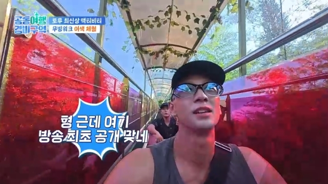 KBS2TV‘공동여행경비구역’캡처KBS2TV‘공동여행경비구역’캡처[뉴스엔서유나기자]가수백호가독특한중국액티비티를체험하게됐다.9월18일방송된KBS2TV'공동여행경비구역'3회에서는김구라,김태균,김승진,김동준,백호,이석기의공동일일경비100만원을이용한중국여행기가이어졌다.이날김동준은"우리나라방송최초로나오는놀이동산이다.한번도나온적없고우리나라사람리뷰조차없는곳"이라며중국의액티비티를즐길수있는곳으로카드를압수당한김태균,백호를데려갔다.이곳에서처음탄건무빙워크였다.안내원이"바닥에깔고앉으라"며건넨걸엉덩이에깔고털썩주저앉은김동준.백호는어디서도본적없는무빙워크탑승법에"이거라고?이게무슨그림이냐.재밌긴하다.방송최초공개는맞다.나이런그림을본적없다"고반응했다.백호는만족도를묻자"이거신박함(신선함)에서100점이다.액티비티스타트치고는귀엽다"고말했다.뉴스엔서유나stranger77@기사제보및보도자료[email protected]ⓒ뉴스엔.무단전재&재배포금지Copyright©뉴스엔.무단전재및재배포금지.