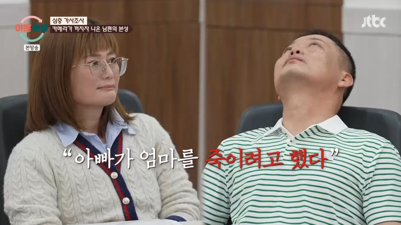(엑스포츠뉴스황수연기자)심각한갈등을겪고있는부부의사연이드러났다.18일방송된JTBC'이혼숙려캠프'(이하'이숙캠')에서는19살의나이차이와국경을뛰어넘은15기두번째부부의사연이공개됐다.이날주인공인57세의남편은중국국적의동포였고,38세의아내는탈북여성이었다.두사람은결혼9년차로슬하에초등학교딸을두고있었다.아내가중국에서체류할때양엄마,아버지가소개시켜줬다는남편은아내의탈북을도와주며인연을맺었다.두사람은19살의나이차이와국경을뛰어넘어딸을낳고행복한가정을이뤘다.그러나결혼초반행복했던시기와달리현재는서로에게욕설을하며극단으로치달은상태였다.특히아내는남편의심각한언어폭력과신체폭력을가장큰문제로꼽았다.아내는"제가2018년3월초에자궁경부암으로수술을받았다.이후딸을위해생명보험을들었다.그런데남편이'나는우리아내가죽어도걱정없다.보험금찾아서놀면서애키우면된다'고하더라.이인간은나를죽이고도남겠다싶어서보험해약을했다"고폭로했다.이에남편은"농담삼아말했다"고주장했다.남편은아내를밀치는등폭력적인위협행동도했다.남편은지난7월'끝장내자'며아내의목을졸랐다.심지어딸에게'보육원보낸다'고언어폭력을가했다.부부싸움을목격한딸은경찰에'아빠가엄마를죽이려고했다'고진술을하기도했다.이후남편은아동학대로신고를당했다.사진=JTBC황수연기자[email protected]©엑스포츠뉴스.무단전재및재배포금지.