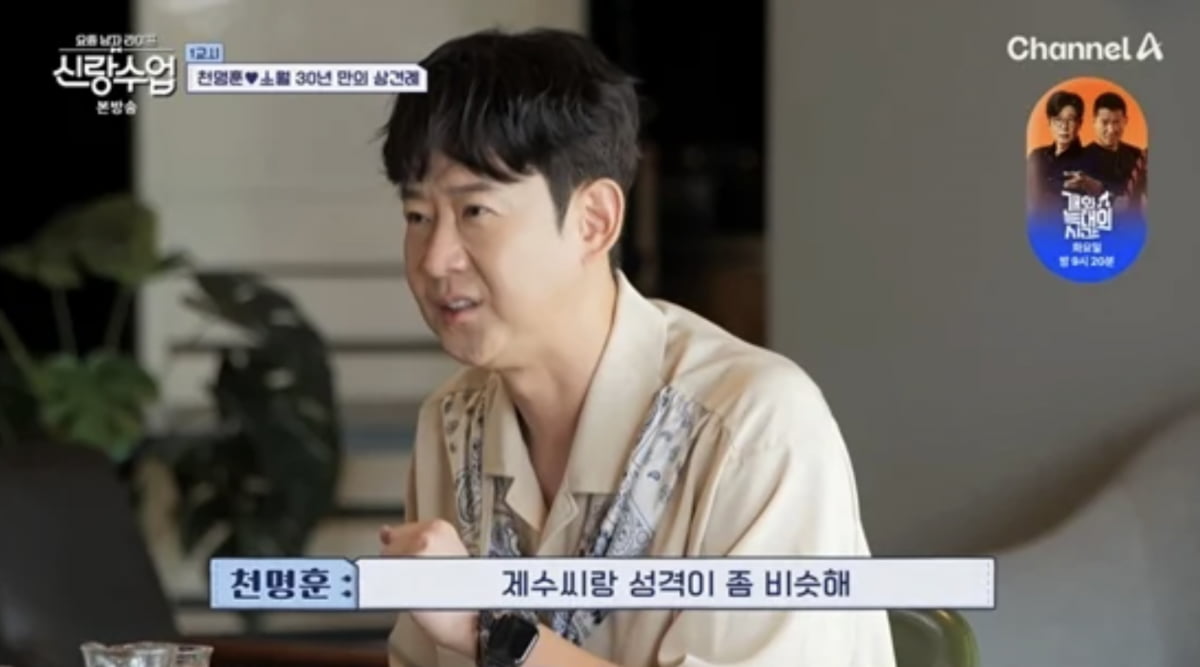 [텐아시아=이민경기자]사진=채널A예능프로그램'요즘남자라이프-신랑수업'가수천명훈이결혼을향한소망을드러냈다.사진=채널A예능프로그램'요즘남자라이프-신랑수업'지난17일방송된채널A예능프로그램'요즘남자라이프-신랑수업'에서는방송인천명훈이노유민과대화를나누며소월을향한진심을전했다.이날천명훈은"사실소월이가제수씨랑성격이비슷하다"라고말했고,노유민은"세구나.카리스마있고"라고맞장구쳤다.천명훈은"그게싫지는않다.내가요즘많이흘리고다니는데소월이가다챙겨준다.처음경험해보는느낌이었다.거기에갇혀서살고싶다는생각이들었다"라고설명했다.사진=채널A예능프로그램'요즘남자라이프-신랑수업'노유민은아내와의연애시절을떠올리며"나도아내의그런모습을보고반했다.코러스단장이라선글라스끼고센터에앉아서지시를하는데,내가그걸당하고싶더라"라고공감했다.그러면서"나도밥먹을때흘리는데잔소리하면서다해준다.딱보니까우리아내와성향이진짜비슷하더라.그런성향의여성분들은빅이벤트를안좋아한다"라고조언을전했다.그는"꽃보다는현금과금을좋아한다"라며경험담을덧붙였고,이다해는"예리하다"라며감탄했다.이날노유민은천명훈에게"진짜사귀는거냐"라고물었고,천명훈은"그렇다고볼수있다.사랑의백분율을올리면서발전하는거다"라고답했다.이어그는"난언제나결혼을생각한다.널존경하게된이유도네가결혼조상님이기때문이다"라며노유민에게존경을드러냈다.사진=채널A예능프로그램'요즘남자라이프-신랑수업'이후등장한소월은"나한테천명훈은평범한친한오빠다"라고선을그었다.이에노유민은"나도아내와그랬었다.원래나혼자일방적인사랑이었다.아내가봤을때내가너무어렸고동생같고애처럼보였을거다.6살나이차이가난다"라고과거를떠올렸다.소월은"저도저보다6살어린남자있으면좋겠다"라고말해웃음을자아냈고,천명훈은"내가정신연령이낮다"라며받아쳤다.노유민은두사람에게"지금티격태격하는데우리도연애할때그랬다.아내랑'우리둘이행복해야아이들이그걸보면서행복하게성장한다.우리둘이행복하자'라고얘기한다"라고전했다.소월은"너무좋은마인드다"라며고개를끄덕였고,천명훈은"나도같은생각이고같은마인드다"라며소월을향한마음을강조했다.이민경텐아시아기자[email protected]©텐아시아.무단전재및재배포금지.