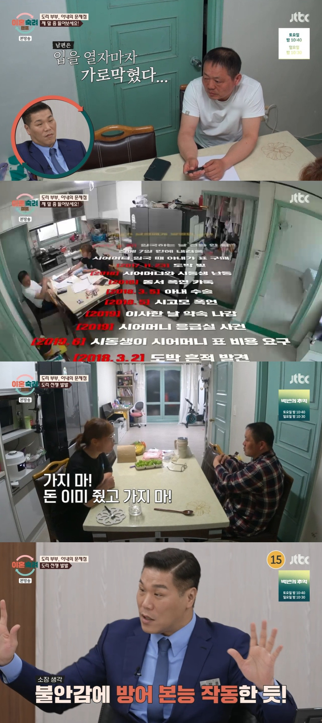 [TV리포트=한수지기자]아내를폭행하고딸의친자검사까지한남편의모습이충격을안겼다.18일방송된JTBC예능프로그램'이혼숙려캠프'에서는19살의나이차이와국경을뛰어넘은15기도리부부의사연이공개됐다.이날박하선은"이혼을본의아니게권장하고있다.그만큼심각하다"라고예고해눈길을끌었다.남편은중국국적의동포장명철씨며,아내는탈북여성장선희씨이었다.결혼9년차인두사람은슬하에초등학교2학년딸하나를두고있었다.아내는탈북후중국에서체류했고,양아버지,어머니로부터남편을소개받았다.당시남편이아내의한국행을도와주면서인연을맺었다.한국을간후에도아내는남편과연락을주고받았고,남편을보러중국까지간것으로알려졌다.그렇게두사람은결혼에골인했다.하지만가정적이던남편은어느순간폭력적으로변했다.아내는"제일심각한게언어폭력이다.때와장소를가리지않고욕설을한다"라며눈물을보였다.일상VCR에서남편은폭력성은커녕무관심한모습을보였다.남편은증거를만들지않기위해어떠한대꾸도하지않는상태였다.이에아내는카메라가꺼져있다고거짓말을했고,이후남편의거친폭언과욕설이이어졌다.심각한보다못한서장훈은"욕을너무하신다"라며놀랐고,아내는"저건본성이다나오지않은거다"라며고개를절레절레내저었다.아내는2018년자궁경부암수술을받았고,2019년본인의생명보험을들었다.아내는"부부동반으로놀러갔는데남편이나는아내죽어도걱정없다.마누라죽으면보험금받아서놀면서애키우면된다라고했다"라고폭로해충격을안겼다.아내는큰정신적충격을받고당시남편의언행을기록해놓기까지했다.아내는"이러다가남편이날죽이고도남겠다"라며보험을해약했다고밝혔다.이뿐만이아니었다.남편은아내에게위협과폭행까지했다.아내는"남편이끝장을내자며내목을2~3분간눌렀다.빠져나오려고했는데안되서발로차고쓰러졌다.남편이(쓰러져있는)제어깨를발로밟아서인대가늘어났다.그래서가정폭력으로신고했다"라고폭로해경악을자아냈다.폭행을한이유를묻는질문에남편은"이유가있다""기억이나지않는다"라고답해분노를자아냈다.남편이던진유리컵파편에자녀가다치는일까지벌어졌다.남편은딸을보육원에보내라는말까지했고,딸은그런아버지에게큰적개심을드러냈다.부부싸움을목격한딸은'아빠가엄마를죽이려했다'라고진술했고,남편은아동학대로신고되기도했다.심지어아내의입을통해남편이바람을피웠다는사실까지공개됐다.남편은이혼한전부인과사이에서도딸을두고있었다.남편은아내몰래전처와연락을했고,전처가딸이결혼식을하니돈을달라고하자남편은아내몰래전처에게천만원을보낸것으로드러났다.상의없이돈을보낸것을뒤늦게안아내는분노했다.더구나남편은아내와상의없이9살딸의유전자검사까지했다.남편은예정일6일먼저나왔다는이유로되려아내의외도를의심했다.그러면서도아내가요구한전처딸의유전자검사는거부했다.상처받은아내는오열하며감정을추스르지못했다.서장훈은그런남편을향해"딸이아빠랑훨씬많이닮았다.왜쓸데없는짓을하냐?이게아내에게얼마나큰상처가되냐?"라고강하게꾸짖었다.한수지기자[email protected]/사진=JTBC'이혼숙려캠프'Copyright©TV리포트.무단전재및재배포금지