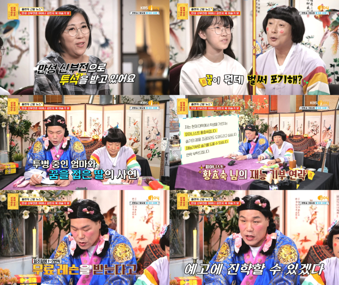 ‘물어보살’신부전증4남매母근황(사진:KBS)9월22일방송된KBSJoy‘무엇이든물어보살’334회에서만성심부전증을앓고있는4남매어머니와첫째딸의근황이전해졌다.앞서사연자는혈액투석을시작한지5개월째라며,건강문제로일을하지못해가족에게늘미안한마음이라고털어놓은바있다.특히첫째딸에게는피아니스트라는꿈이있었지만,아픈엄마와어려운가정형편때문에꿈을포기했다는고백에많은시청자들의안타까움을샀다.당시서장훈은“지금중요한건본인이건강을회복하는것”이라며사연자에게몸을최우선으로챙기라고조언했다.방송이후에는기적같은소식이이어졌다.피아니스트황효숙씨가직접연락해재능기부를자청,첫째딸은현재일주일에1~2회무료레슨을받으며다시꿈을키워가고있다.황효숙씨는딸의연주를듣고“이정도실력이면예고진학도가능하다.열심히해보자”라며가능성을높게평가했다고전해졌다.이에이수근은“이렇게도움을주시는분들이계신다는게정말감동적이다”라며“따님도꿈을꼭이루길바라고,어머님도건강관리잘하셔서앞으로가정에행복만가득하길바란다”라고응원의메시지를전했다.매주월요일밤8시30분KBSJoy에서방송되는‘무엇이든물어보살’은LGU+tv1번,Genietv41번,SKBtv53번,그리고KBS모바일앱'myK'에서시청할수있고,지역별케이블채널번호는KBSN홈페이지에서확인가능하다.또한‘무엇이든물어보살’의더많은영상은주요온라인채널(유튜브,페이스북등)및포털사이트에서도찾아볼수있다.박지혜기자[email protected]뉴스연예팀기사제보[email protected]©bnt뉴스.무단전재,재배포및AI데이터활용금지