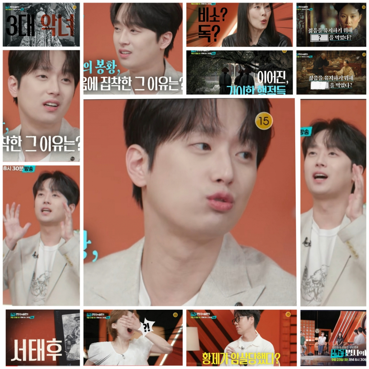 [스타뉴스|문완식기자]이찬원도경악!서태후죽음의비밀[셀럽병사의비밀]가수이찬원이젊음과나라를맞바꾼3대악녀서태후의생로병사를파헤친다.23일오후8시30분방송하는KBS2TV'셀럽병사의비밀'에서는중국청나라제9대황제함풍제의추존황후'서태후'의죽음의비밀이집중조명된다.앞서진행된녹화에서는배우문정희와고려대학교역사교육과조영헌교수가스토리텔러로출연했다.서태후는황제를사원에가둘만큼악랄했다.이찬원은"황제가붕어하셨다"라며갑작스러운황제의죽음을큰소리로리얼하게재연해눈길을끌었다.이찬원도경악!서태후죽음의비밀[셀럽병사의비밀]이어이찬원은"치사량에2000배에달하는독"이라고설명했고,"대표적인독이죠"라는이낙준의말에문정희는"비소독?"이라고말했다.서태후의만행은계속되었고소년들을가둬놓고밤마다기이한행적을펼쳤다.이찬원을비롯한출연자들은경악을금치못했다.또한"서태후가젊음을유지하기위해아침저녁먹은것이있다"는말에답을들은장도연은이마를짚으며큰충격을받았다.이찬원은"진짜죽기싫었나보다"라며이해하기어렵다는표정을지어궁금증을자아냈다.문완식기자[email protected]©스타뉴스&starnewskorea.com,무단전재및재배포금지