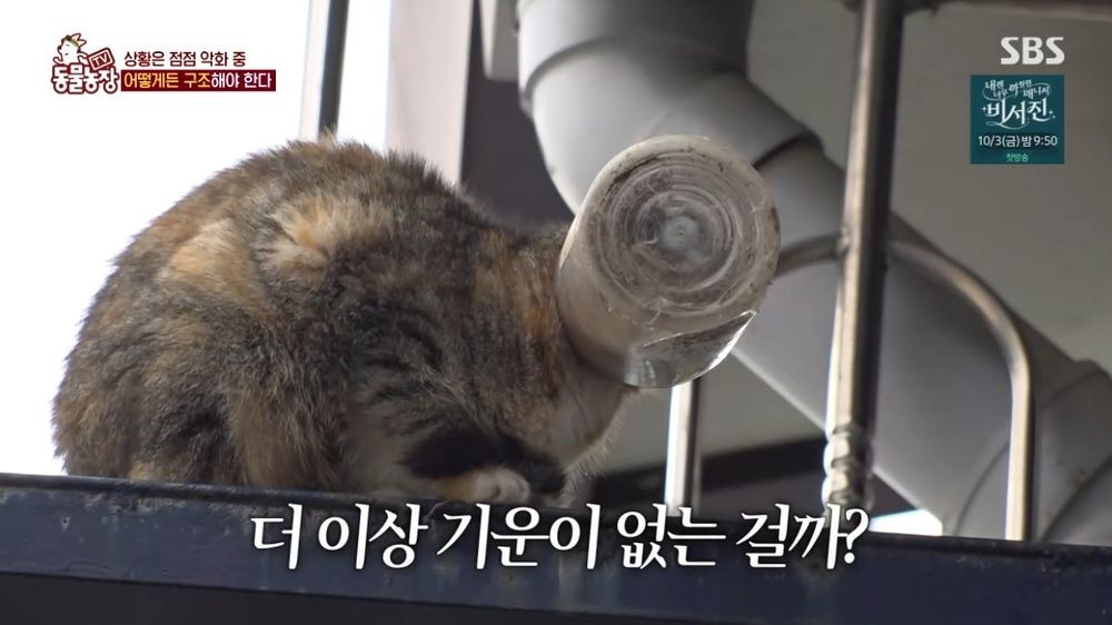 [TV리포트=양원모기자]모성애는위대하다.28일오전SBS'TV동물농장'에서는전북남원한시골마을에서머리가플라스틱통에낀채10일간새끼들을돌봐온어미고양이의사연이소개됐다.제보자민준씨가보내온영상속고양이는머리전체가플라스틱통에끼어어쩔줄몰라하는모습이었다.고통스러운듯연신앞발로통을빼내려했지만,이내포기하고말았다.마을을몇시간동안뒤진끝에어느집마당에서어미를발견한제작진.하지만제작진이다가가자어미는컨테이너밑으로숨어버렸고,그곳엔갓태어난새끼고양이네마리가꼬물거리고있었다.어미는머리가통에끼어먹지도,마시지도못하는극한상황에서여전히새끼들에게젖을물리고있었다.마을주민들은"어미고양이가이미10일가까이그런상태로지내왔다"고증언했다.제작진은곧장어미구조작전에돌입했다.하지만작전은고난의연속이었다.극도의경계심을보이는어미는사람이다가가기만해도화들짝놀라도망쳤다.연신앞발로통을빼려시도하다가도이내포기하고마는모습이안타까움을더했다.이에제작진은새끼들부터일단안전하게구조했다.다음날제작진은궂은날씨속계단위에서홀로비를맞고있는어미고양이를만났다.어미는제작진이접근하자황급히빈건물안으로숨었다.그러나건물이삼면이막힌구조라오히려포획작전을펼칠절호의기회가됐다.긴급출동한구조팀의신속한작전끝에어미고양이는마침내구조됐다.어미는플라스틱통을제거하자그제야편안한표정을지었다.병원으로이송된어미는먼저구조된새끼들과무사히재회했다.송정은수의사는"(머리가낀부위에)염증이약간있지만,(피부가)찢어지거나괴사하지는않았다"며"혈액검사에서는전신염증반응이나왔고,오랫동안음식이나물을먹지못하다보니급성신부전이왔다.콩팥에문제가생긴것"이라고진단했다.동물병원에머물며당분간치료를받기로한어미와새끼고양이들.제보자는"일단치료를잘받으면서회복했으면좋겠고,좋은곳으로입양갈수있을때까지임시보호도생각해보겠다"고말했다.'TV동물농장'은인간과동물의진정한소통을추구하는동물전문프로그램으로,매주일요일오전9시30분SBS에서방송된다.양원모기자[email protected]/사진=SBS'TV동물농장'방송캡처Copyright©TV리포트.무단전재및재배포금지