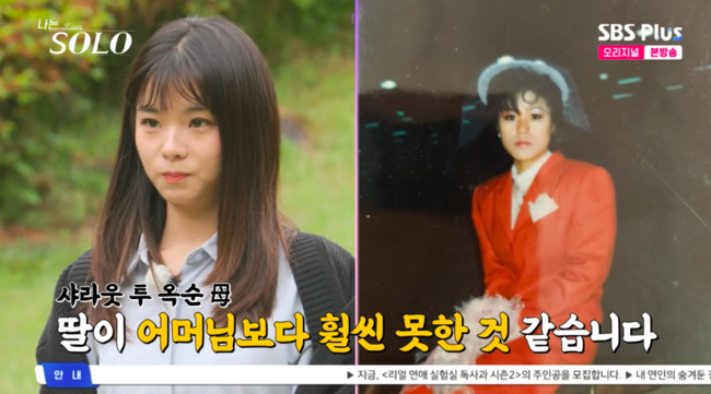 방송시청후작성된리뷰기사입니다.[OSEN=박하영기자]‘나는SOLO’28기옥순이모태미녀임을인증했다.1일방송된ENA와SBSPlus예능‘나는SOLO’(이하‘나는솔로’)에서는28기옥순의어머니사진이몰표받는모습이그려졌다.이날28기는각자어린시절의사진과부모님사진을보고선택해데이트매칭에나섰다.입소첫날,상대의부모님사진과어린시절사진을각각한장씩골랐던바.먼저서로의어린시절사진을고른영수와옥순이1:1데이트를하게됐다.이때옥순의어린시절사진이공개됐고,어린시절부터뛰어난미모를자랑해눈길을끌었다.데프콘은“완전귀엽다.지금이랑똑같다”라고말했다.다음은부모님사진매칭이었다.그러나남자들은모두같은사진을골라놀라움을자아냈다.이들이고른옥순의어머니는빨간투피스를입고고혹적인자태를뽐내고있었다.데프콘은“그어머니에그딸”이라고했고,이이경도“옥순이옥순했습니다”라고감탄했다.현숙은“여기어머님이나오셨어야하는거아니야?”라고했고,제작진은한술더떠“딸이어머님보다훨씬못한것같다”라고해웃음을자아냈다.이후영숙과데이트를나선옥순은“나는7표를받아본적이없는데”라고놀라워했고,영수는“모태미인인거아니냐”라고미모를극찬했다.그말에옥순은“모친이미인아니냐”라고너스레를떨었다./mint1023/@osen.co.kr[사진]‘나는SOLO’방송화면캡처Copyright©OSEN.무단전재및재배포금지.