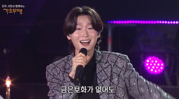 가요무대김용빈/사진=KBS1캡처[스포츠투데이임시령기자]'가요무대'김용빈이'금수저'로진(眞)의품격을드러냈다.6일방송된KBS1'가요무대'는'진주시민과함께하는가요무대'특집으로꾸며진가운데,'미스터트롯3'진김용빈이출연해무대를펼쳤다.이날축제말미에등장한김용빈은'금수저'로현장분위기를달궜다.'금수저'는'미스터트롯3'경연중받은신곡으로,김용빈의부드럽고감미로운목소리가특징인곡이다.김용빈은감성짙은보컬과살랑살랑스텝을밟는등무대매너를선보이며'가요무대'하이라이트를장식했다.이를본관객은환호하며열렬히박수를보냈다.한편,김용빈은오는15일팬미팅'스카이캐슬'개최를앞두고있다.티켓은예매오픈과동시에전석매진을기록했다.[스포츠투데이임시령기자[email protected]]Copyright©스포츠투데이.무단전재및재배포금지.