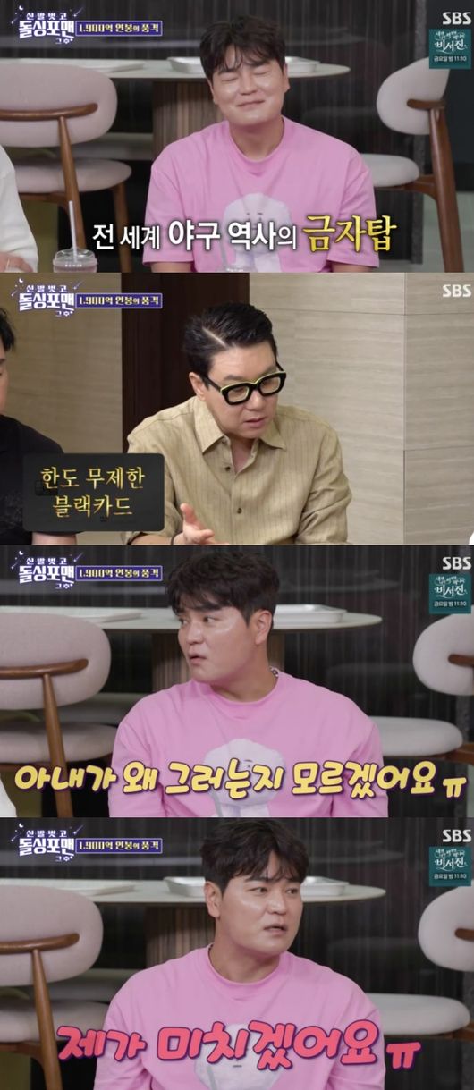 [스포츠조선김준석기자]전야구선수추신수가아내하원미와의일화를공개하며블랙카드보유사실을털어놨다.7일방송된SBS예능'신발벗고돌싱포맨'에는추신수,전이종격투기선수김동현,가수백호가출연했다.이날추신수는아내하원미와의연애시절에대해이야기했다.이상민은"하원미씨와사쉬고나서집에안보냈다고하던데.또과로로병원에까지입원했다고하던데"라고물어모두를놀라게만들었다.이에추신수는"금전적으로여유가없었다.PC방이나찜질방을데리고다녔다"라고너스레를떨어웃음을자아냈다.또추신수는"메이저리그시절에매일전화를해서바로'미야사랑해'라고했는데룸메이트가그게인사인줄알았던거다.그래서'미야사랑해'라고하더라"라고말해웃음을자아냈다.추신수는"요즘도하루에영상통화를5번이상한다.메이저리그시절에서부에서경기를하면아내가사는곳은새벽이다.그래서전화를안하면새벽3시에전화가와서'왜전화안해'라고하더라.그래서나중에는부재중전화라고찍히게바로전화하고끊는경우가있었다.근데그게한번걸렸었다.그때안자고있더라.그래서'코치님이얘기하자고그랬다'"라고말해웃음을자아냈다.추신수가"아내하원미의눈치를보며산다"고고백해모두를놀라게만들었다.추신수는"아내가은퇴전에는먹여살린다고했는데은퇴하고얼마안되고나서게임을하고있는데'뇌세포다죽는다'라고하더라"라고말해웃음을더했다.이상민은"하원미씨가'우리남편은상체는사람이고하체는말이다'라고했다는데"라고물었고,추신수는"전성기때는말도안하다가은퇴하고몸이안좋아지니까놀리기시작한다.'자기엉덩이어디갔는데'라고하는데자존심이너무상하더라"라고이야기했다.또이상민은"추신수는가장의무게도무너졌다더라.부부싸움할때'어디서개가짖나'라고한다는데"라고물었고,추신수는"표정부터진다.그래서'너그거무슨표정이야'라고한다"라고말해웃음을자아냈다.누적연봉1900억원에대해탁재훈은"은퇴했어도연금이나오지않냐"라고물었고,추신수는"지금안받고있다.60세이후부터받을예정이다.그때되면한3억원정도된다.죽을때까지나온다"라고이야기했다.이상민은추신수에게"아내분유튜브를봤는데희귀한카드들이많더라.상위1%만가능한블랙카드,한국인9999명만발급받을수있는한국블랙카드도있더라,또전세계공항라운지를어디든이용할수있는카드도있더라"라고언급했다.추신수는"아내가왜그러는지모르겠다.유튜브를위해서모든걸오픈해서내가미치겠다"라고말해웃음을자아냈다.이상민이"보유한카드중에현금200억원이상있어야발급되는카드도있다던데?"라고묻자,추신수는"맞다.블랙카드는카드사에서고객을직접선정한다"며"당시카드사에서세번정도전화가왔는데,전화를받으니'블랙카드회원으로모시고싶다'고하더라"고회상했다이어"처음에가입비가많이비쌌다.그당시1만달러(한화약1,413만원)이었다.아내도함께가입하니까총2만달러(한화약2,827만원)이었다"라고덧붙여출연진들의감탄을자아냈다.또추신수는"메이저리그10년을뛰면메이저리그VIP카드가나온다.그카드가있으면메이저리그경기장아무곳이나갈수있다.제일좋은자리에서볼수있다"라고말해모두를놀라게만들었다.대저택에대해이상민은"아내분이초대를했었다"라고말했고,추신수는"언제든OK다.야구시즌에오면제일좋은자리에서야구도함께보겠다"라고플렉스를했다[email protected]©스포츠조선.무단전재및재배포금지.