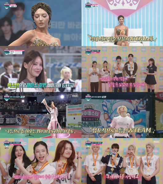 [OSEN=강서정기자]MBC‘2025추석특집아이돌스타선수권대회(연출노승욱,이민지,김익환이하‘아육대’)의대장정이마무리됐다.올해댄스스포츠에서는프로대회를방불케하는화려한무대로이목을끌었다.라틴15년경력의‘X:IN(엑신)’노바는쉴틈없이몰아치는고난도퍼포먼스를선보이며좌중을압도했고,30점만점에29.3점이라는점수를획득하며우승을확정지었다.이점수는기존‘아육대’댄스스포츠최고기록인‘Kep1er(케플러)’샤오팅의29.2점을넘어선역대최고득점으로,프로경기급완성도를선보이며‘아육대’댄스스포츠의수준과위상을한단계높였다.금메달을목에건‘X:IN(엑신)’노바는“데뷔전부터‘아육대’에나오는것이꿈이었다”라며우승에대한남다른소감을밝혔다.‘아육대’가아이돌스타들에게단순한예능을넘어,자신의실력과열정을마음껏펼칠수무대임을다시한번입증한순간이었다.권총사격혼성단체전에서는국내대표아이돌명가소속사들의빅매치로SM,웨이크원,스타쉽,그리고‘아육대’특별조합‘루키즈’가출전했다.‘루키즈’는‘2025아육대한정전속팀’으로‘KickFlip(킥플립)’민제,‘아홉(AHOF)’즈언,‘BabyDONTCry(베이비돈크라이)’이현,‘힛지스(HITGS)’혜린까지올해데뷔한4명의신인들로구성된팀이다.4강전에서웨이크원은SM을상대로승리,루키즈는스타쉽을상대로승리해결승에진출했다.웨이크원의‘izna(이즈나)’방지민,루키즈의‘KickFlip(킥플립)’민제는‘엑스텐’을쏘며결승전다운경기력을뽐냈고,엎치락뒤치락하는치열한접전끝,웨이크원의‘ZEROBASEONE(제로베이스원)’김지웅&성한빈과‘izna(이즈나)’방지민&최정은을상대로루키즈(킥플립민제,아홉즈언,베이비돈크라이이현,힛지스혜린)가금메달을목에걸게되며,제1회‘아육대’혼성권총사격우승을가져갔다.이어‘아육대’의하이라이트이자‘육상의꽃’400m릴레이에서는아이돌스타들의자존심을건치열한레이스가이어졌다.여자400m릴레이는올해첫출전에나선슈퍼루키들이대거등장해화제가됐다.특히,MC전현무는쉬는시간도시락을받으러뛰어가는‘Hearts2Hearts(하츠투하츠)’의주력에깜짝놀랐던비하인드를언급,강력한우승후보로점찍었다.예선1조경기에서는‘Hearts2Hearts(하츠투하츠)’가시작부터단독선두를유지하며조1위를기록했고,전년도은메달리스트‘Kep1er(케플러)’가조2위로결승에진출했으며,예선2조경기에서는‘FIFTYFIFTY(피프티피프티)’,‘QueenzEye(퀸즈아이)’가결승에진출하게됐다.환상의팀워크로처음부터끝까지선두를유지한‘Hearts2Hearts(하츠투하츠)’는‘도시락파워’를입증하며금메달을차지,첫출전만에‘아육대’무대를뒤흔든다크호스다운반전을써냈다.남자400m릴레이에서는손에땀을쥐게만드는명승부들이펼쳐졌다.남자들의자존심을건경기인만큼예선전부터추월에추월을거듭하는승부가펼쳐졌다.예선1조경기에서는치열한접전끝에‘앰퍼샌드원(AMPERS&ONE)’과‘KickFlip(킥플립)’이결승에진출했다.예선2조경기에서는전년도금메달리스트‘&TEAM(앤팀)’이배턴을놓치는치명적인실수를하기도했지만조2위를기록,‘루네이트(LUN8)’와함께결승에진출했다.예선에서실수를만회하듯,결승에서압도적인스피드를선보인‘&TEAM(앤팀)’은58초대기록으로400m릴레이2연패를달성하며다시한번육상최강자임을증명했다.이날시청률조사기관닐슨코리아에따르면MBC‘아육대’3부는채널경쟁력을가늠하는핵심지표인2049시청률0.7%를기록하며,동시간대방송된모든프로그램중1위를차지했다.추석연휴기간동안방송된전회차가2049시청률부문에서동시간대1위를기록하며명절대표예능으로서의독보적존재감을보여줬다.특히대세신인그룹‘Hearts2Hearts(하츠투하츠)’의카르멘이400m릴레이결승선을가장먼저통과하며팀의금메달을확정짓는장면은분당최고시청률4.8%까지치솟아시청자들에게짜릿한감동을선사했다.MBC‘2025추석특집아이돌스타선수권대회’는국내최정상급아이돌스타들이다채로운스포츠종목에도전해해마다역대급화제성을만들어낸명절대표예능프로그램이다.지난6일부터8일까지3일간방송된‘2025아육대’는육상(60m단거리,400m릴레이),댄스스포츠,씨름,승부차기,그리고신설종목권총사격까지다양한경기가펼쳐지며추석명절온가족이함께즐길수있는스포츠축제를선사했다.한편,15년간이어온명절대표예능인MBC‘아육대’는세계적으로주목받는K-POP의인기속에서아이돌스타들이음악을넘어스포츠까지활약무대를넓히는동시에,글로벌팬들에게즐거움과감동을안기며K-콘텐츠의저력을입증했다./[email protected][사진]MBC제공Copyright©OSEN.무단전재및재배포금지.