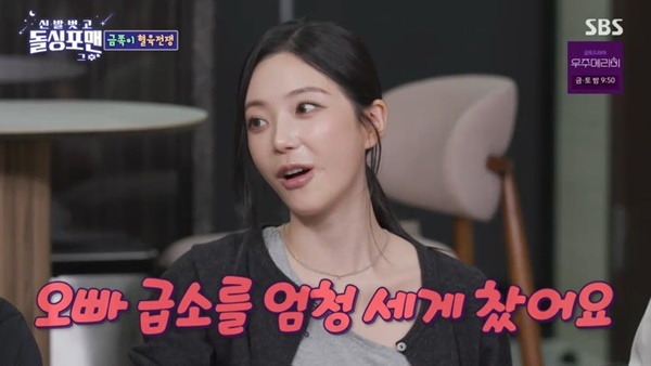 SBS‘돌싱포맨’SBS‘돌싱포맨’[뉴스엔유경상기자]윤하정이친오빠와싸우다가급소를찼다고말했다.10월14일방송된SBS‘돌싱포맨’에서는핫이슈메이커홍진영,정인,조정치,윤하정이출연했다.윤하정은오빠와싸우면끝장을본다며“별거아닌데.제가문잠그고들어갔는데오빠가문을따고들어와서저를때리려고했다”고에피소드를풀었다.이어윤하정은“어렸을때엄마가위험한상황에닥치면남자들은고추먼저차라고했다.너오늘죽었다.오빠거기를겁나세게찼다.오빠가악!이러고넘어져서발로밟았다”고말해모두를놀라게했다.탁재훈이“오빠는지금오빠가아니에요?근황이궁금하다”며걱정을드러내자윤하정은“다행히다다음달에아기가나온다”고알렸고,탁재훈이“걱정했다.다행이다”며안도했다.(사진=SBS‘돌싱포맨’캡처)뉴스엔유경상yooks@기사제보및보도자료[email protected]ⓒ뉴스엔.무단전재&재배포금지Copyright©뉴스엔.무단전재및재배포금지.