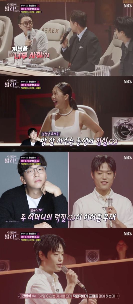 방송시청후작성된리뷰기사입니다.[OSEN=임혜영기자]정재형이이적의근황을전했다.14일방송된SBS음악오디션‘우리들의발라드’에서는본선2라운드가펼쳐졌다.이날홍승민과대결하게된천범석은임영웅의‘다시만날수있을까’를선택했다.천범석은어머니로인해해당노래를알게되었다고밝혔으며작곡가가이적인점도언급했다.임영욱의히트곡인만큼,전현무는어쩐지요즘이적표정이좋다고말했고정재형은“저녁을너무사준다”라며동조했다.또정재형은“(재밌는점은)어머님때문에이곡을알게된것아니냐.이적씨도어머님때문에이곡을쓰게된것이다”라고말했다./[email protected][사진]SBS음악오디션‘우리들의발라드’Copyright©OSEN.무단전재및재배포금지.