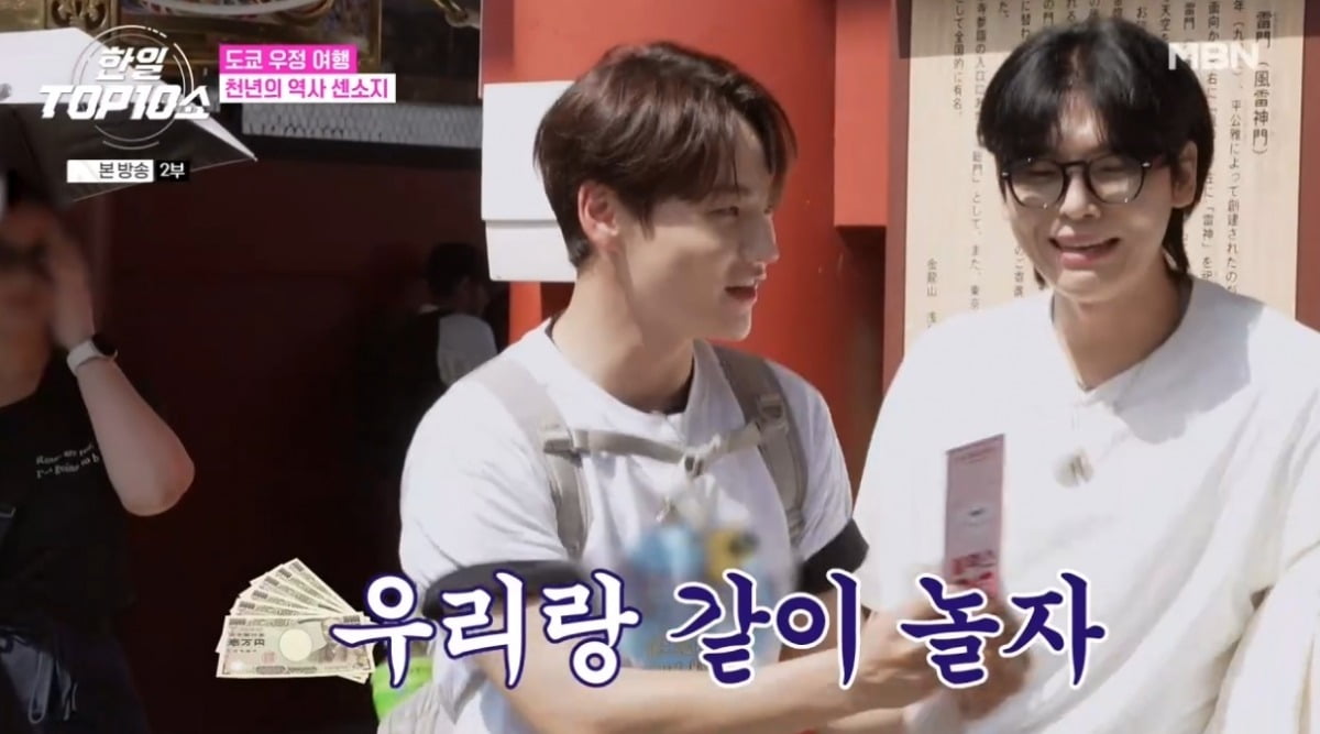 [텐아시아=임채령기자]사진=MBN'한일톱텐쇼'캡처에녹과김준수가일본여행에앞서일본음식먹을생각에들뜬모습을보여눈길을끈다.14일밤9시50분방송된MBN'한일톱텐쇼'에서는박서진,에녹,김준수,최수호가일본으로가일본TOP7멤버들과경쟁을뛰어넘은우정과화합의시간을가지는모습이그려졌다.이날방송에서박서진,에녹,김준수,최수호가새벽부터공항에모인뒤일본으로떠났다.에녹은"나는다른게설레는게아니라맛있는거먹을거제일설렌다"고했다.에녹은그러면서"일본음식너무사랑한다"고했다.김준수는"다들일본가보시지않았냐"고했고박서진은"도쿄는처음가본다"고했다.이때옆에서에녹은"오디션보러갔었다"고했다.김준수는"일본에가본적이없어서위시리스트가있다"며"일본우동먹기랑먹거리체험을많이하고또제가창극을하고있으니까가부키공연관람을하고싶다"고했다.이를듣던에녹은"일주일은있다가와야할것같다"고했다.사진=MBN'한일톱텐쇼'캡처그렇게오전에하네다공항에도착한네사람은도착하자마자편의점에들러일본간식을구매해눈길을끌었다.도쿄에서다시만난한일대표팀이유쾌한여행기를그리며웃음을안겼다.한국대표팀은일본도쿄의명소센소지에서일본대표팀을만나반갑게인사를나눴다.나카미세도리거리를지나며일본의전통간식과기념품을구경한멤버들은본당앞에서인증샷을남겼다.박서진은"리치리치매니러치"라며용돈봉투를꺼내자랑했고이를본미사야가박서진을짝으로선택했다.이어신은김준수를,최수호는슈와짝을이루며한일팀이나란히이동했다.최수호가"내가그렇게돈이없어보이나"라며너스레를떨자슈는"위헤브노머니"라고장난스럽게외치며웃음을자아냈다.박서진은센소지상점가에서마사야에게"모찌모찌기모찌"라며즉석개그를선보였고,마사야는폭소를터뜨렸다.이어김준수와박서진은일본전통간식인당고를구입해맛봤다.박서진이"뭐지이게"라며고개를갸웃하자김준수는마사야의"맛있냐"는질문에"미묘하네"라고답했다.김준수는"팥죽안에새알팥죽있지않냐"며"그새알맛이다"고설명했고박서진은"그거설탕에버무린맛이다"고받아쳤다.김준수가"생각보다달지않네"라고말하자박서진은"달다"며"형너무설탕많이쳐드시는거아니냐"고했다.그러자김준수는"그래나쳐먹는다"며솔직한농담으로현장을웃음바다로만들었다.임채령텐아시아기자[email protected]©텐아시아.무단전재및재배포금지.