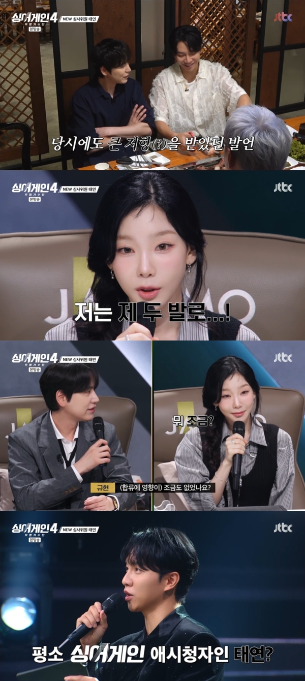 [스타뉴스|김정주기자]/사진=JTBC예능프로그램'싱어게인-무명가수전시즌4'걸그룹소녀시대의태연이오디션프로그램의첫심사위원으로나섰다.14일첫방송된JTBC예능프로그램'싱어게인-무명가수전시즌4'에서는역대최다지원자가몰린가운데,치열한경쟁을뚫고본선에진출한무명가수81인이공개됐다.이날심사위원석에는주니어심사위원으로새롭게합류한태연이등장했다.MC이승기는"규현이내가태연을데리고왔다고소문내고있다.이말이사실이냐"라고물어시선을모았다.규현은심사위원첫회동당시"제가주니어심사위원한분을직접섭외했다"며기세등등한표정을지은바있다./사진=JTBC예능프로그램'싱어게인-무명가수전시즌4'이에태연은"저는제두발로걸어들어왔다"라고선을그어웃음을자아냈다.그러자규현은"조금도영향이없었냐"라고울상을지었고,태연은"조금?"이라고답해모두를폭소케했다.싱어게인애청자를자처한태연은"너무재밌게봤고,집에서혼자심사평도하면서즐겨봤던프로그램이다"라고말했다.그는심사기준에대해"선곡도실력이라고생각한다.본인에게가장잘어울리는선곡을했는지중점적으로보겠다.이분의목소리를다시한번들어보고싶다는생각이들면버튼을누를것같다"라고밝혀심사평에기대감을모았다.김정주기자[email protected]©스타뉴스&starnewskorea.com,무단전재및재배포금지