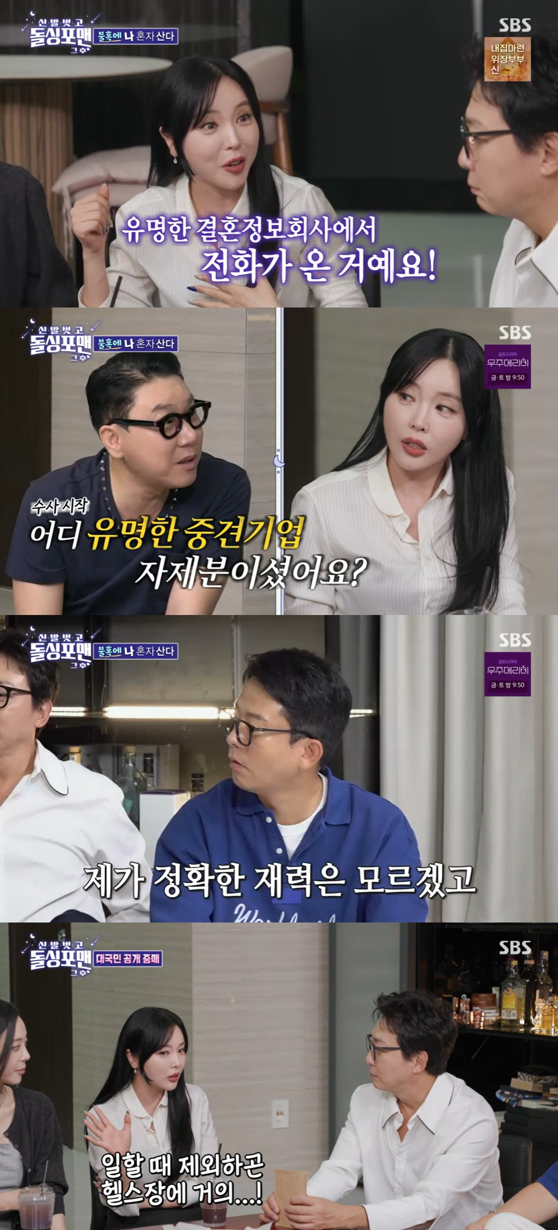 [스타뉴스|안윤지기자]/사진=SBS'돌싱포맨'방송캡처'돌싱포맨'가수홍진영이결혼에대한생각을밝혔다.14일방송된SBS예능프로그램'돌싱포맨'에서는홍진영,조정치,정인,윤하정이게스트로출연했다.홍진영은"사실어릴때는마흔이라는나이가굉장히멀게느껴졌다.그래서20대때는마흔전에는결혼하지않을까생각했다"라며"근데시간이지나니까결혼하고싶다는마음이안생기더라"고했다.이상민은"최근엔결혼정보회사에서전화왔다고하던데"라고묻자,홍진영은"차에서이동하다가전화가왔다.가입된분중에날만나고싶어하는분이계신다고내연락처를수소문에서알아냈다더라.처음에보이스피싱인줄알았다"라며"안만났다.내가제일싫어하는게소개팅이다"라고토로했다.또한재벌손자와소개팅했다는의문에대해선"정·재계10위인지아닌지는모르겠다"라며"처음본날거만하게앉아있었다.친한언니생일파티였다.딱들어갔는데상석에앉아서45도각도로얼굴을들고있었다.날보고'쟤뭐야?'라고물어봤다.그때날모를수가없었다.누가봐도홍진영이고화장다하고있었다.기분이너무나빴다.그리고나보고'너오늘부터내여자하라'고했다.너무싫었다"라고말해웃음을자아냈다.한편'돌싱포맨'은매주화요일오후11시10분에방송된다.안윤지기자[email protected]©스타뉴스&starnewskorea.com,무단전재및재배포금지
