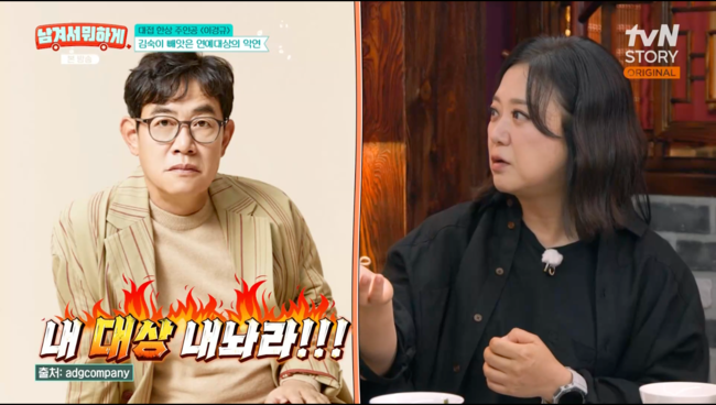 방송시청후작성된리뷰기사입니다.[OSEN=박근희기자]'남겨서뭐하게’김숙이이경규와의특별한'악연'을공개해웃음을자아냈다.15일전파를탄tvNSTORY‘남겨서뭐하게’에서는포맷개편기념으로김숙이스페셜MC로출격한가운데‘예능대부’이경규가출연했다.숙은5년전두사람이K본부연예대상후보에함께올랐던일화를털어놨다.수상직후후보들중유일하게이경규의<연예가중계>인터뷰가잡혀있어서당시대부분이경규의대상수상을확신했다고.김숙은당시상황에대해“끝나고후보중에유일하게<연예가중계>인터뷰가있는거예요”라고설명했다.엎친데덮친격으로,K본부사장이김숙에게“축하합니다”라는말을건네면서대상수상에대한확신은더욱커졌다고.그러나알고보니<연예가중계>인터뷰는다른프로그램으로잡혀있던일정이었고,사장의축하멘트역시그전에받은팀워크상에대한감사인사였다.김숙은이경규가충분히오해할만한상황이었다고전했다.김숙은이일이후이경규가자신을'대상도둑'으로몰았다고폭로했다.그는“그뒤로이경규선배님이내대상내놓으라고.김숙이내대상훔쳐갔다고.그런악연이있다”고말해웃음을안겼다./[email protected][사진]‘남겨서뭐하게'방송화면캡쳐Copyright©OSEN.무단전재및재배포금지.