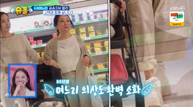 방송시청후작성된리뷰기사입니다.[OSEN=박하영기자]‘슈퍼맨이돌아왔다’김윤지시어머니이자국악인김영임이패셔니스타면모를드러냈다.15일방송된KBS2TV예능‘슈퍼맨이돌아왔다’(이하‘슈돌’)에서는김윤지-엘라네의추석나가기가그려졌다.이날김윤지는시어머니김영임,딸엘라와함께추석을맞아마트를찾았다.무엇보다김영임은72세가믿기지않는트렌디한패션을선보여눈길을끌었다.김윤지는“저희어머니가패셔니스타다.저바지가참고로제바지”라며“어머님이랑저랑엘라랑외출해본거처음이다.셋이꾸안꾸느낌으로나왓다.안꾸민듯가을룩으로나왔다”라고말해감탄을자아냈다.마트를찾은이유로김윤지는“오늘대명절인추석이다.작년추석에는저도아직몸이회복중이었고,작년엔그걸못했다.올해는뭔가전도같이부치고대가족우리는이렇게지낸다는걸보여주고싶었다”라며3대가처음으로장을보러왔다”라고전했다./mint1023/@osen.co.kr[사진]‘슈퍼맨이돌아왔다’방송화면캡처Copyright©OSEN.무단전재및재배포금지.