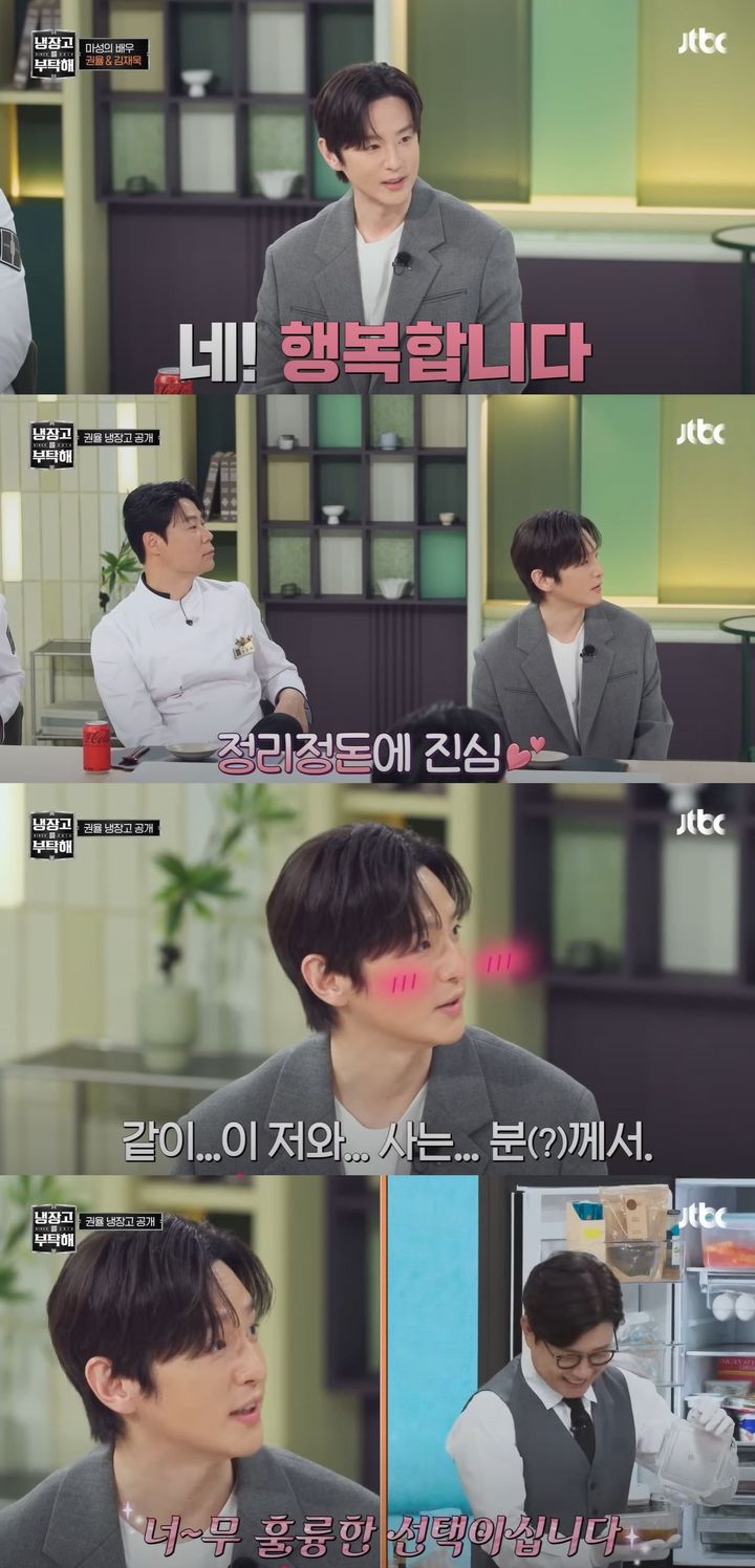 [서울=뉴시스]배우권율이지난19일방송한JTBC예능프로그램'냉장고를부탁해'에게스트로출연했다.(사진=JTBC'냉장고를부탁해'캡처)[email protected]*재판매및DB금지[서울=뉴시스]신지아인턴기자=배우권율이아내요리실력에당황했다.그는지난19일방송한JTBC예능프로그램'냉장고를부탁해'에게스트로출연했다.김성주가"신혼생활행복하시냐"고묻자권율은"그렇다.불안하다고대답할뻔했다"고답했다.이어권율은신혼집냉장고를공개했다.권율은"정리정돈을좋아하는성격이라직접냉장고를정리했다"고말했다.김성주가"이장조림은누가한거냐"고질문하자권율은"저와같이사는분께서만드셨다"고했다.권율은"(아내가장조림을)처음한거라절반의성공이다"라고말했다.김성주가"사랑으로먹는중이냐.이건시식을안하겠다"고하자권율은"너무훌륭한선택"이라고해웃음을자아냈다.한편권율은배우황승언친동생이라고알려진비연예인여성과지난5월결혼했다.☞공감언론뉴시스[email protected]©뉴시스.무단전재및재배포금지.