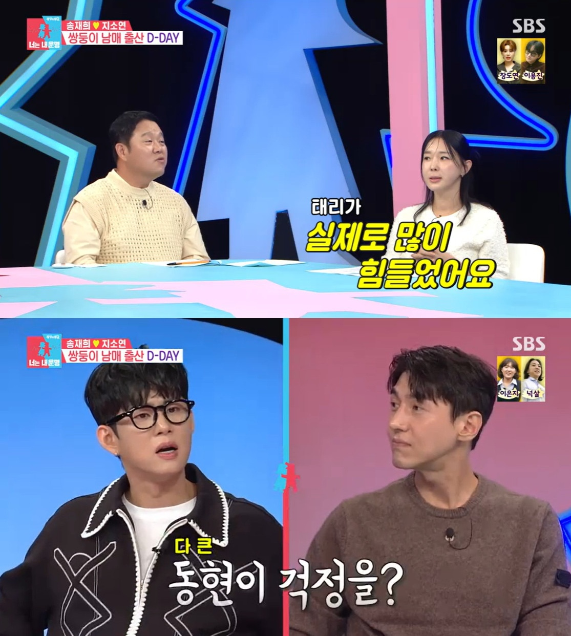 동상이몽2/사진=SBS방송캡처[스포츠투데이임시령기자]'동상이몽2-너는내운명'송재희,지소연부부가첫째와쌍둥이에대한걱정을드러냈다.20일방송된SBS예능'동상이몽2-너는내운명'에서는쌍둥이부모가된송재희,지소연부부의출산현장이공개됐다.이날지소연은출산당일,남편송재희에게"고민이있다.첫째가둘째를맞이할때트라우마가생기지않게어떻게하면좋을까고민했다"고말했다.이어"그냥내가먼저(조리원갔다가)집에들어오고아기는택배처럼할머니가데려오는게좋지않을까"라고말했다.지소연은"다른존재를안아들고오는게(아이에게)충격적일것같다.첫째의정서를케어할수있는여러가지방법들이있으니까우리가할수있는건노력해야한다는생각"이라고얘기했다.이를본이지혜도"저도엄청심각했다.아이가받을충격이심하다고하니까.실제로(첫째태리가)많이힘들어했다"고털어놨다.이에김구라도"나도동현이때문에걱정했다.생각보다잘이겨내더라"고해웃음을안겼다.아내지소연의이야기를듣던송재희는반박하며"무엇보다우리애들은그냥애들이아니다.해병의자식들이다.강하게뭐든극복해내야한다"고강하게얘기했다.[스포츠투데이임시령기자[email protected]]Copyright©스포츠투데이.무단전재및재배포금지.