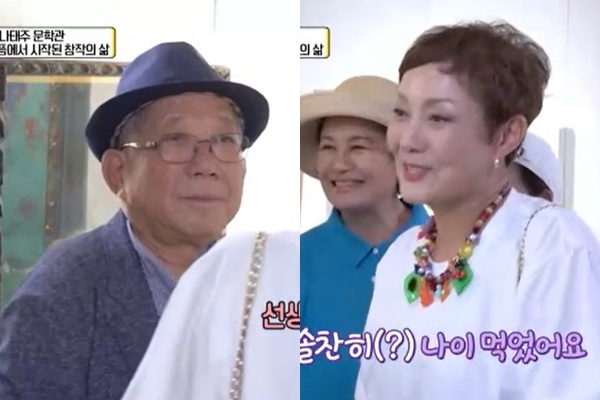 KBS2TV‘박원숙의같이삽시다’KBS2TV‘박원숙의같이삽시다’KBS2TV‘박원숙의같이삽시다’[뉴스엔하지원기자]홍진희가17살연상인나태주에게'오빠'호칭을붙였다.10월20일방송된KBS2TV'박원숙의같이삽시다'에는공주의딸오나미가일일가이드로등장했다.이날멤버들은공주에서활동중인국민시인나태주를만났다.홍진희는1945년생으로17살연상인나태주에게"저기죄송한데선생님이라고불러요아니면오빠라고불러요?"라고물었다."아무렇게나불러라"는말에홍진희는"그러면저는오빠라고부를게요"라고답했다.나태주가"나이먹어서미안하다"고하자홍진희는"저도많이먹었다"고너스레를떨었다.뉴스엔하지원oni1222@기사제보및보도자료[email protected]ⓒ뉴스엔.무단전재&재배포금지Copyright©뉴스엔.무단전재및재배포금지.