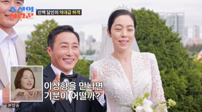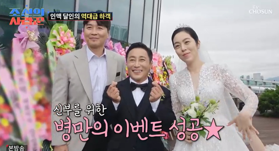 TV조선‘조선의사랑꾼’TV조선‘조선의사랑꾼’TV조선‘조선의사랑꾼’TV조선‘조선의사랑꾼’[뉴스엔하지원기자]개그맨김병만결혼식이마치시상식을방불케하는화려한하객라인업으로눈길을끌었다.10월20일방송된TV조선'조선의사랑꾼'에는김병만부부결혼식현장이전파를탔다.결혼식시작한시간전부터하객들이속속도착했다.김병만절친가수KCM부터배우최여진부부,배우전혜빈,방송인김국진,샘해밍턴,가수백호,배우이태곤,코미디언박성광,코미디언김학래,가수겸배우김동준,전축구선수이동국등화려한인맥이총출동했다.특히이동국을발견한현은재씨는팬심을감추지못하며"어떡해!빨리사진좀찍어주세요"라며떨리는마음을내비쳤다.이는대학시절이동국의열혈팬이었던아내를위해김병만이직접준비한깜짝이벤트였다.김병만은"아내이런모습처음봤다.나도멋있게생각하는동생인데아내게좋게봐주니까좋다"라고말했다.뉴스엔하지원oni1222@기사제보및보도자료[email protected]ⓒ뉴스엔.무단전재&재배포금지Copyright©뉴스엔.무단전재및재배포금지.